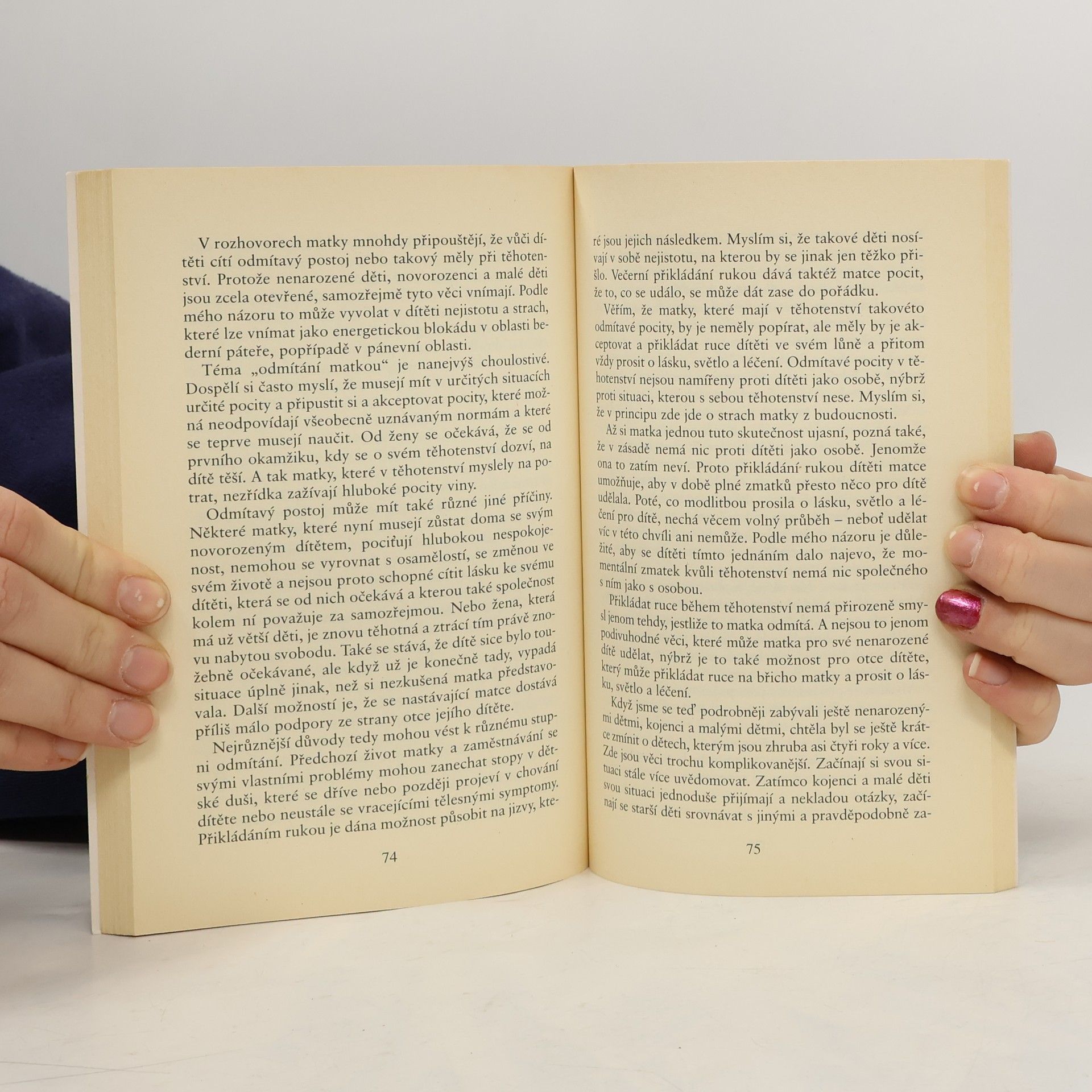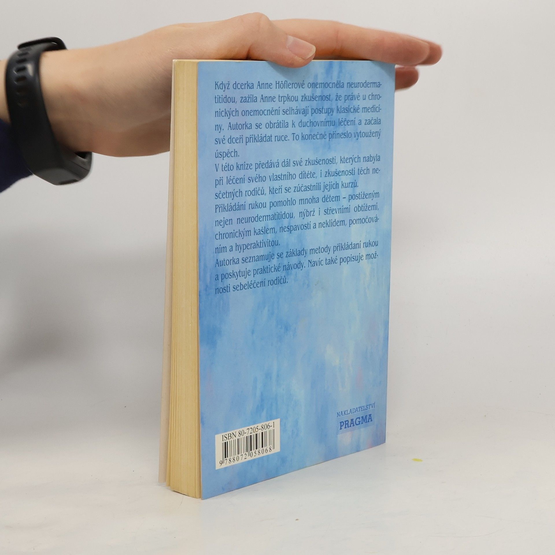 Praktický návod k léčení dětí postižených neurodermatitidou a jinými chronickými nemocemi. Když dcerka Anne Höflerové onemocněla neurodermatitidou, zažila Anne trpkou zkušenost, že právě u chronických onemocnění selhávají postupy klasické medicíny. Autorka se obrátila k duchovnímu léčení a začala své dceři přikládat ruce. To konečně přineslo vytoužený úspěch. V této knize předává dál své zkušenosti, kterých nabyla při léčení svého vlastního dítěte, i zkušenosti těch nesčetných rodičů, kteří se zúčastnili jejích kurzů. Přikládání rukou pomohlo mnoha dětem - postiženým nejen neurodermatitidou, nýbrž i střevními obtížemi, chronickým kašlem, nespavostí a neklidem, pomočováním a hyperaktivitou. Autorka seznamuje se základy metody přikládaní rukou a poskytuje praktické návody. Navíc také popisuje možnosti sebeléčení rodičů.