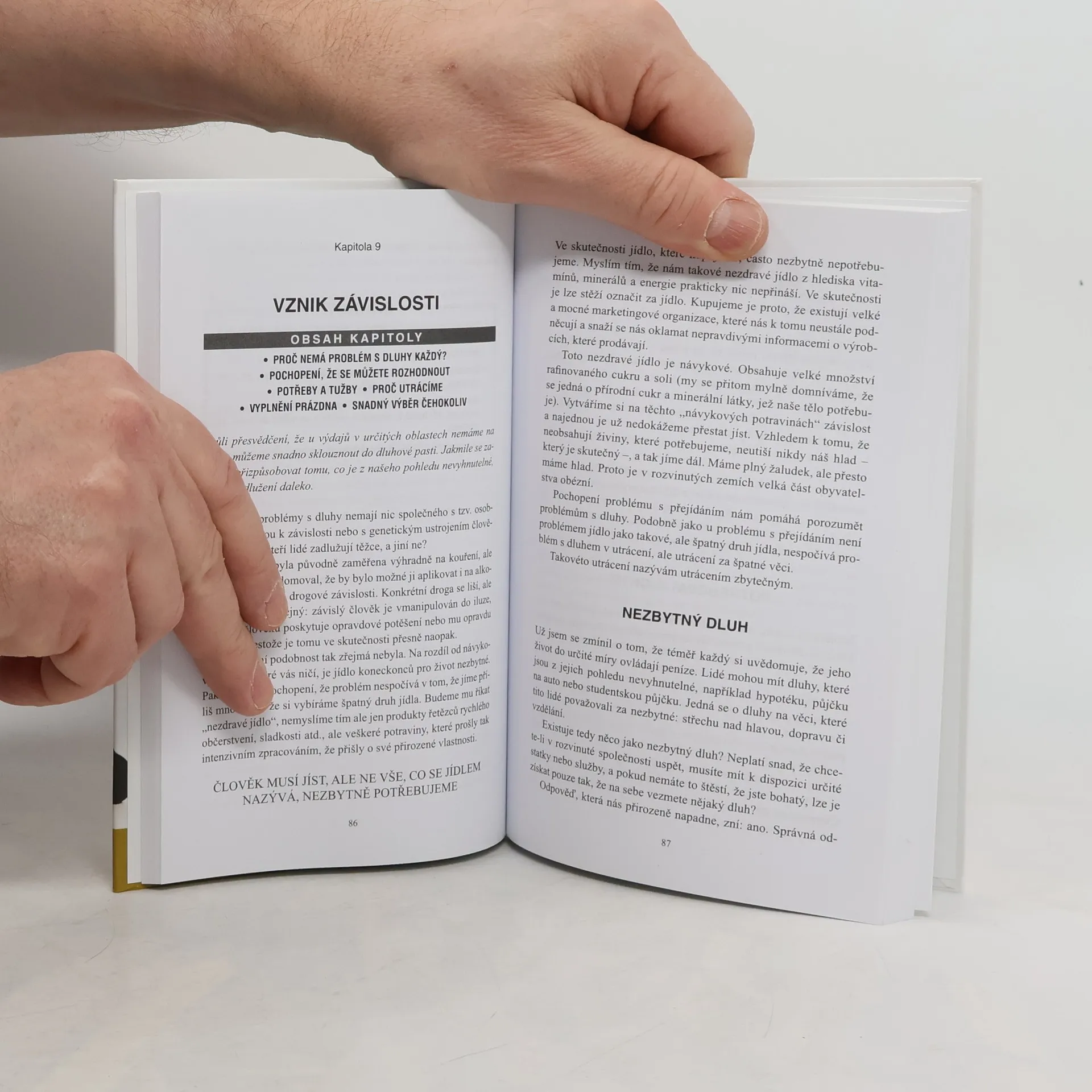 Kupte si vše, co potřebujete, a veďte bohatý a naplňující život a přitom se zbavte všech dluhů, dejte do pořádku vztahy s lidmi kolem sebe, a to aniž byste museli spoléhat na sílu vůle, něco obětovat či si něco odříkat. Kniha Snadná cesta k životu bez dluhů aplikuje světoznámou metodu Easyway Allena Carra na problémy nadměrného utrácení a dluhů. Zbaví vás touhy nadměrně utrácet, a vy budete moci žít s penězi, které máte, bez pocitu, že o něco přicházíte. V knize dále najdete jednoduchý návod, s jehož pomocí se snadno zbavíte dluhů, které jste nahromadili. Tato kniha je plná praktických rad zaměřených na to, jak své peníze využívat co nejefektivněji, a užít si tak ze života co nejvíc. Díky této knize se může každý vymanit z dluhového marasmu a znovu objevit radost ze svobody, již mu dává to, že má navždy klid od starostí o peníze.