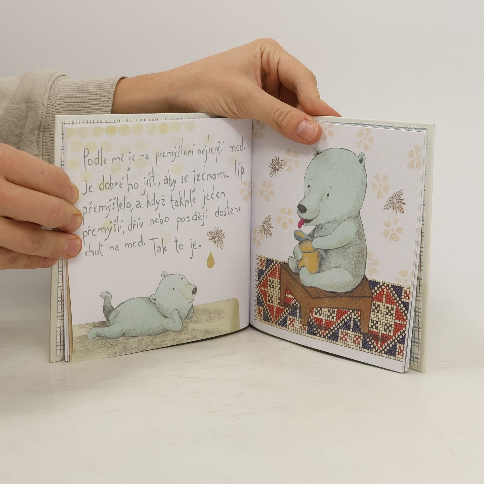Kniha o medvědovi a jeho dědečkovi, o kapkách medu a o tom, že mluvit se dá i mlčky.