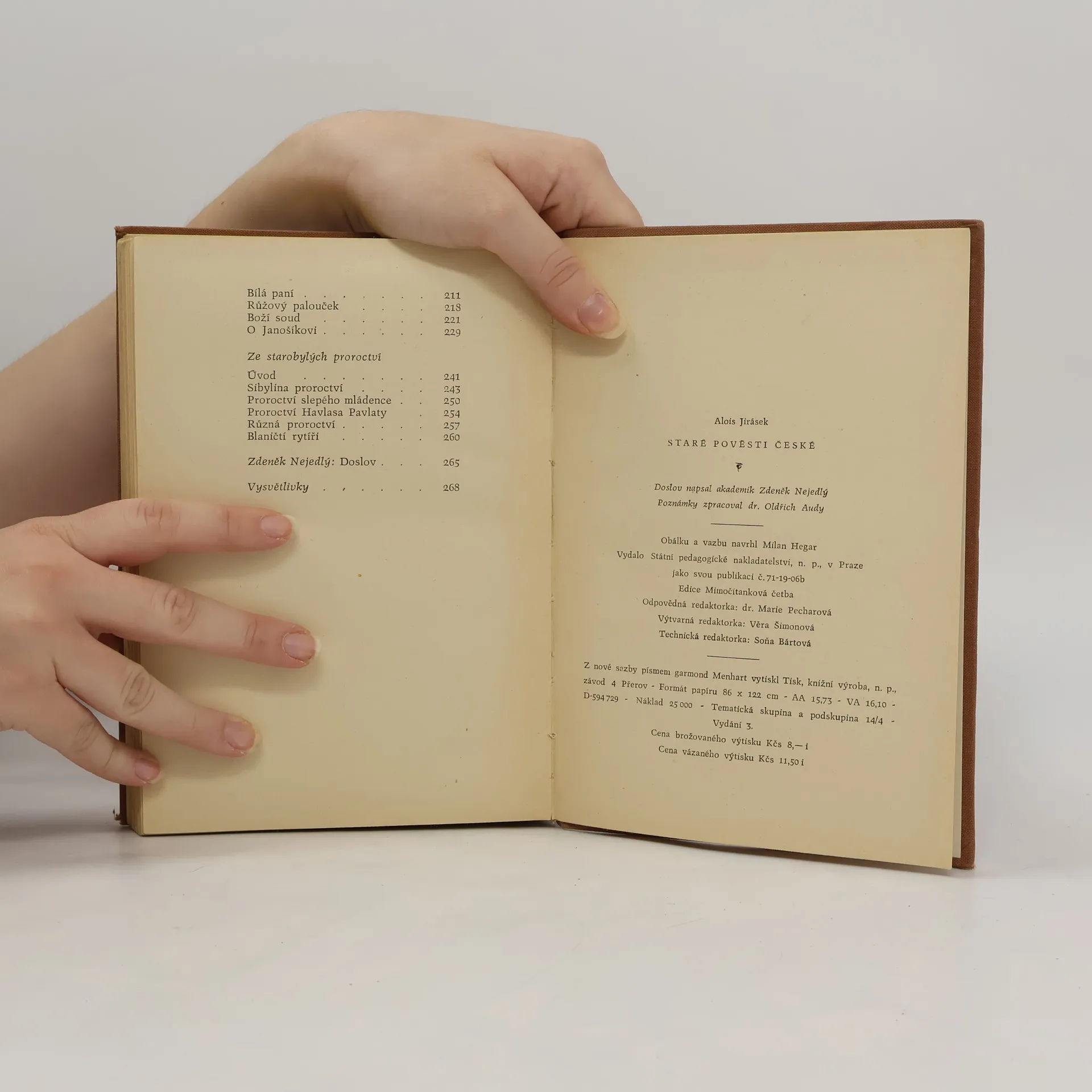 Knížka od samotného prvního vydání v roce 1894 patří do zlatého fondu české literatury a její znalost patří k základnímu vzdělání. Jirásek tu sebral a beletristicky zpracoval nejznámější české pověsti. Je jich třicet pět a dočteme se mezi nimi např. o praotci Čechovi,Krokovi a jehodcerách,Přemyslovi i Libušiných proroctvích nebo o staré Praze....