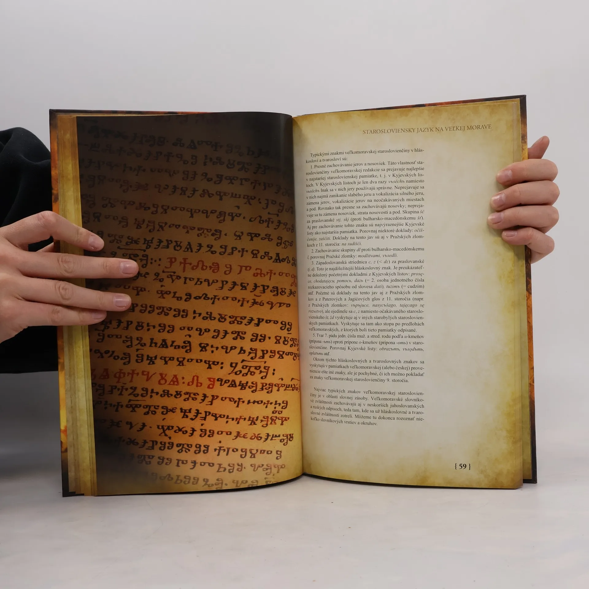 Publikácia predstavuje najstaršie písomné pamiatky z historického obdobia Veľkej Moravy viažuce sa k územiu dnešného Slovenska. Jej cieľom je čitateľovi objasniť spoločenskú, umeleckú a historickú hodnotu staroslovienskych textov. Značná pozornosť je venovaná ukážkam z veľkomoravskej literárnej tvorby - predkladá pôvodné texty i preklady doplnené komentovanou časťou. Ide napríklad o dokumenty Zákon súdnych ljudem, Kyjevské listy, Cividalské evanjelium, Nomokánon, Napomenutie vladárom. Týmto spôsobom chce priblížiť a sprístupniť čitateľovi činnosť Konštantína a Metoda, obsahom ju možno zaradiť do celkového spoločenského a kultúrneho vývinu našich predkov v 8. a 9. storočí. Publikácia obsahuje nádherné ilustrácie a umelecké fotografie dokumentov a je vydaná k 1150. výročiu príchodu Konštantína a Metoda na naše územie.