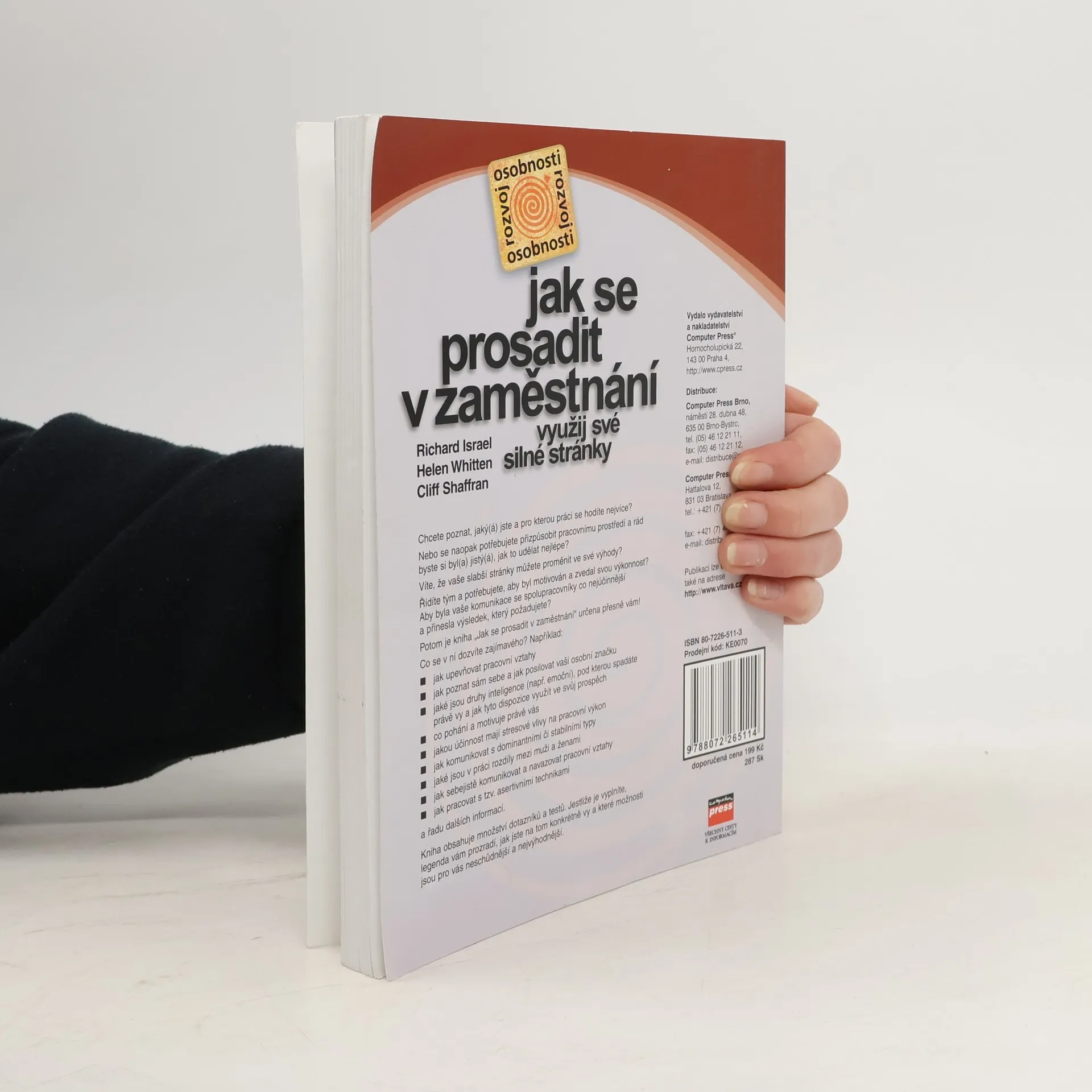 Staleté moudrosti praví, že každý z nás je jiný a může vyniknout právě na své parketě. Je tomu však vždy tak? Opravdu se musíte orientovat jen tam, na co máte vlohy a dispozice? Testy v knize vám pomohou zjistit, jaké jsou vaše silné stránky i vaše slabiny. Poradí vám, jak na sobě pracovat, jak se vylepšovat a eliminovat to slabší ve vás. Jak najít tu správnou rovnováhu mezi vámi a okolím. Cvičení vám pomohou zúročit sílu vaši osobnosti a dokázat se prosadit v takovém zaměstnání, v jakém potřebujete.... celý text