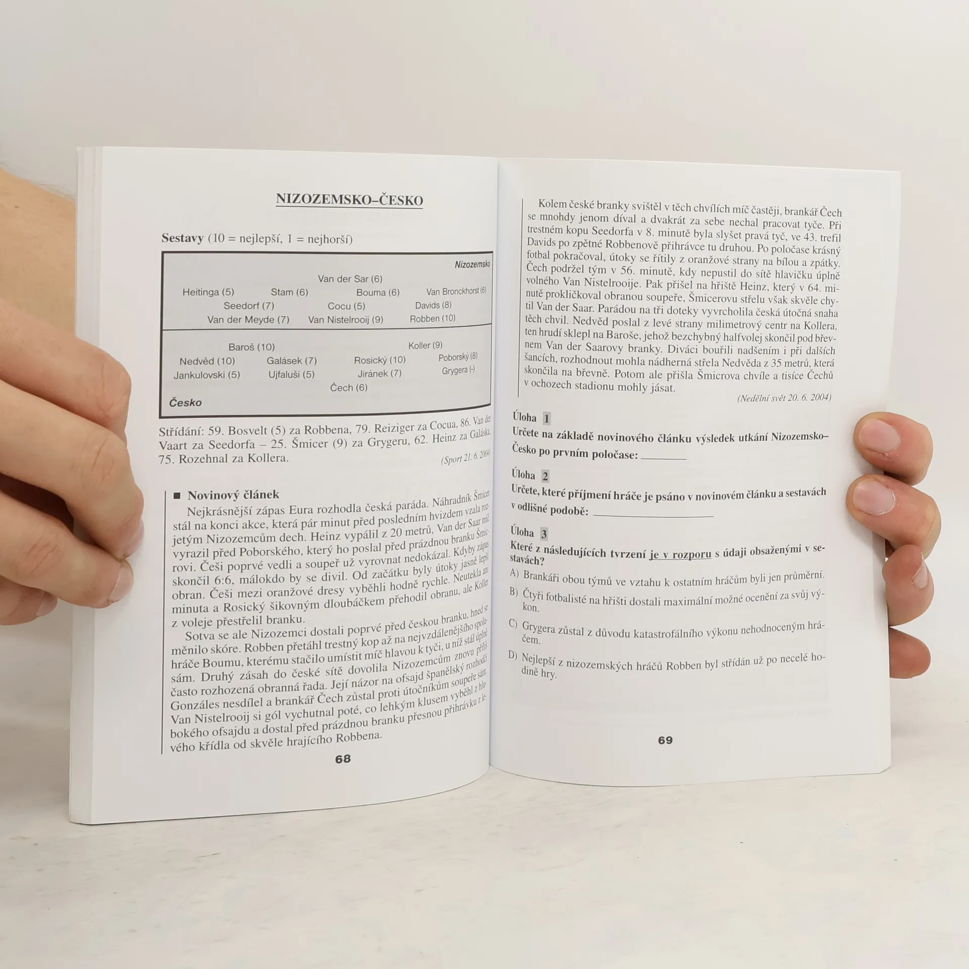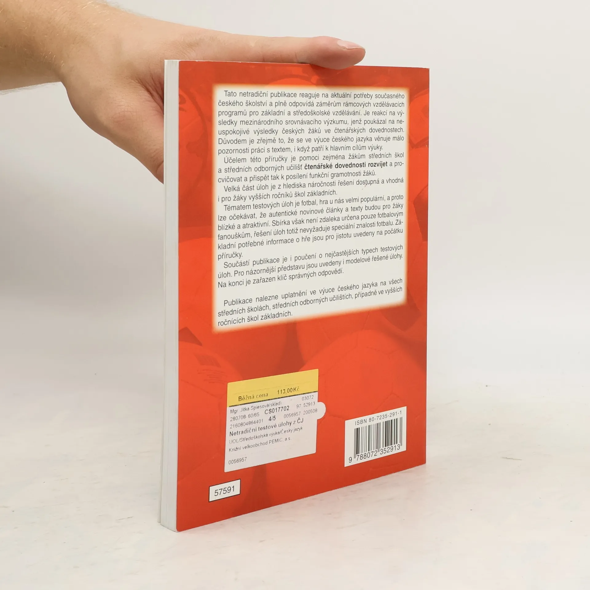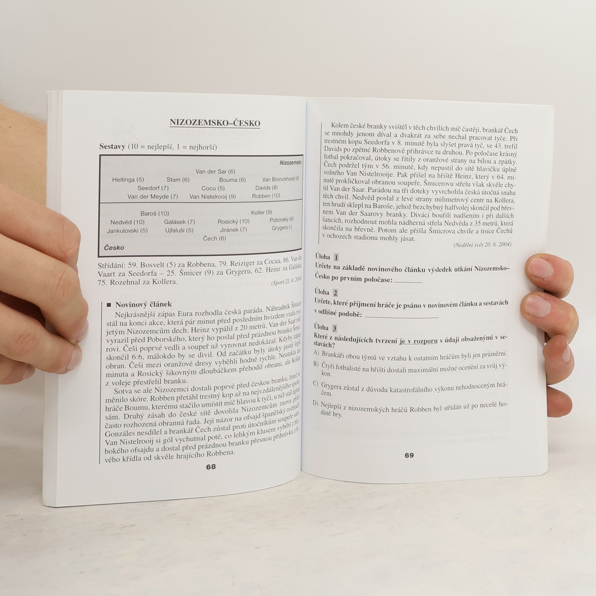 Publikace je určena pro vyšší ročníky ZŠ a všechny typy SŠ a SOU. Jejím účelem je pomoci žákům rozvíjet a procvičovat čtenářské schopnosti. Tématem úloh je fotbal, řešení ale speciální znalosti fotbalu nevyžadují. Součástí publikace je poučení o nejčastějších typech testových úloh, jsou zde uvedeny i modelové řešené úlohy a klíč správných odpovědí.