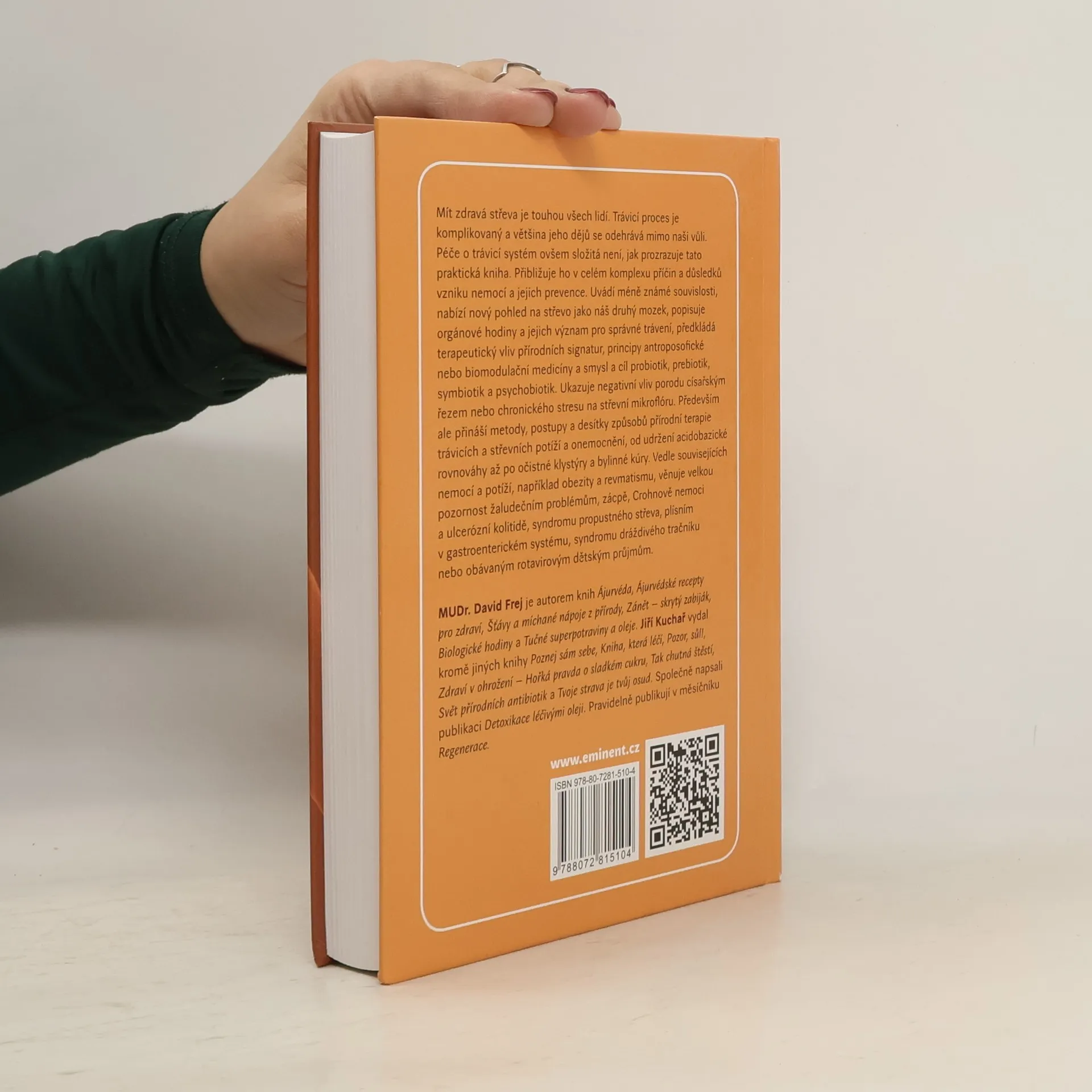 Mít zdravá střeva je touhou všech lidí. Trávicí proces je komplikovaný a většina jeho dějů se odehrává mimo naši vůli. Péče o trávicí systém ovšem složitá není, jak prozrazuje tato praktická kniha. Přibližuje ho v celém komplexu příčin a důsledků vzniku nemocí a jejich prevence. Uvádí méně známé souvislosti, nabízí nový pohled na střevo jako náš druhý mozek, popisuje orgánové hodiny a jejich význam pro správné trávení, předkládá terapeutický vliv přírodních signatur, principy antroposofické nebo biomodulační medicíny a smysl a cíl probiotik, prebiotik, symbiotik a psychobiotik. Ukazuje také negativní vliv porodu císařským řezem nebo chronického stresu na střevní mikroflóru. Především ale přináší metody, postupy a desítky způsobů přírodní terapie trávicích a střevních potíží a onemocnění, od udržení acidobazické rovnováhy až po očistné klystýry a bylinné kúry. Kromě dalších nemocí a potíží, například obezity, věnuje velkou pozornost žaludečním problémům, zácpě, Crohnově nemoci a ulcerózní kolitidě, syndromu propustného střeva, plísním v gastroenterickém systému, syndromu dráždivého tračníku nebo obávaným rotavirovým dětským průjmům.