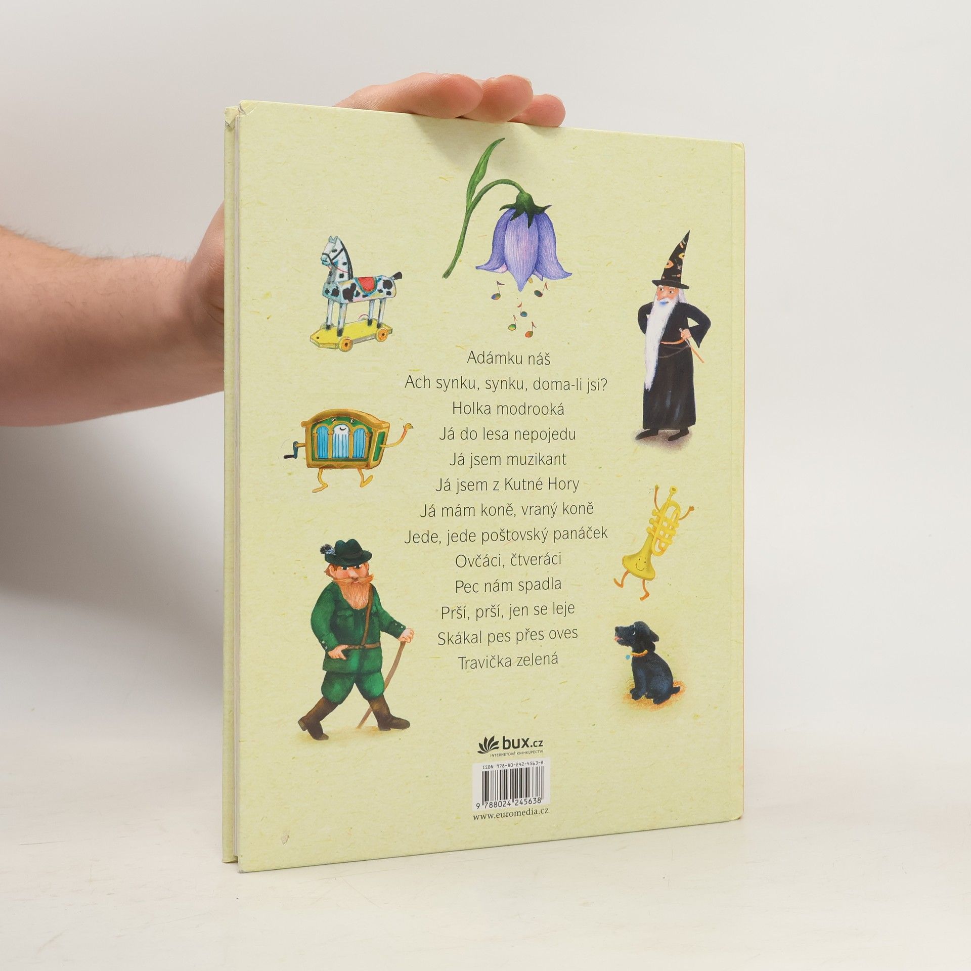 Adámkovi se nechce do školy, ale po probuzení z prapodivného snu se tam ještě rád vypraví. Copak to znamená „domalisi“ a „oralisi“? A zloděj vánočních stromečků jistě nerad vzpomíná na to, co se stalo, když na něj přišel hajný. Pohádky známé autorky knížek pro děti se tentokrát inspirovaly nejoblíbenějšími lidovými písničkami.