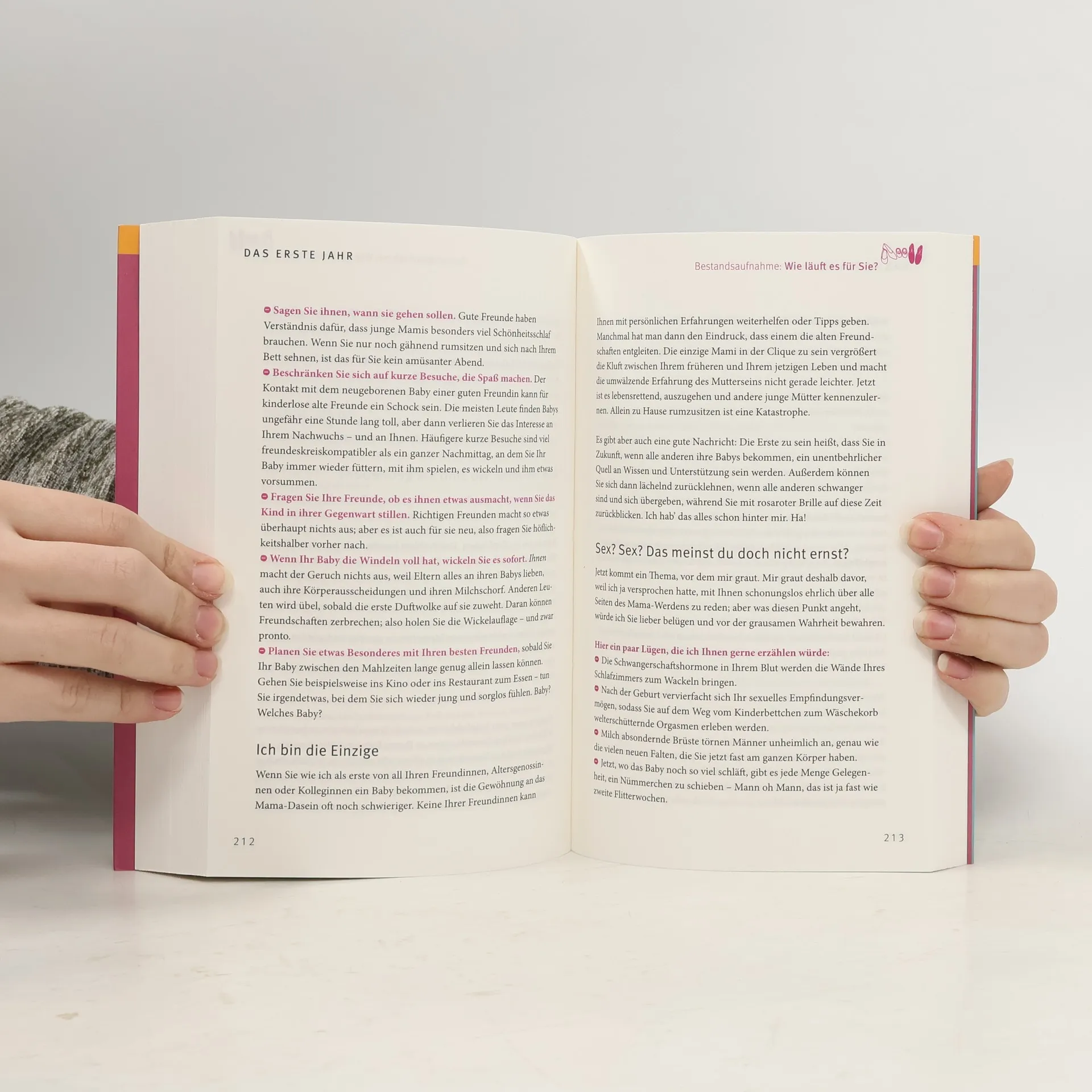 Liz Fraser hat auf Basis ihrer eigenen drei Schwangerschaften und Erfahrungen mit ihren Kindern einen pragmatischen, witzigen, außergewöhnlichen Mama-Ratgeber geschrieben: Sie erklärt wie eine gute Freundin, offen und ehrlich, wie es ist, schwanger zu werden, ein Baby zu bekommen und mit Kleinkind zu leben. Die klassischen Themen von Schwangerschafts- und Babybüchern streift sie eher am Rande. Vielmehr gibt sie frischen, humorvollen Rat für das Leben und die Gefühlslagen in anderen Umständen. Zum Beispiel: Wie lässt man am besten die Bombe platzen, dass man schwanger ist? Welche Vorlieben sollte man vor der Geburt noch mal richtig genießen? Wie kann man einen lieben langen Tag mit einem Neugeborenen ausfüllen? Keine Lust auf Sex nach der Geburt - was tun? Dieser Ratgeber der anderen Art, den man wie einen Roman durchschmökern kann, begleitet werdende und frisch gebackene Mamas dabei, langsam in die neue Rolle hineinzuwachsen und nach der eigenen Vorstellung glücklich zu werden.