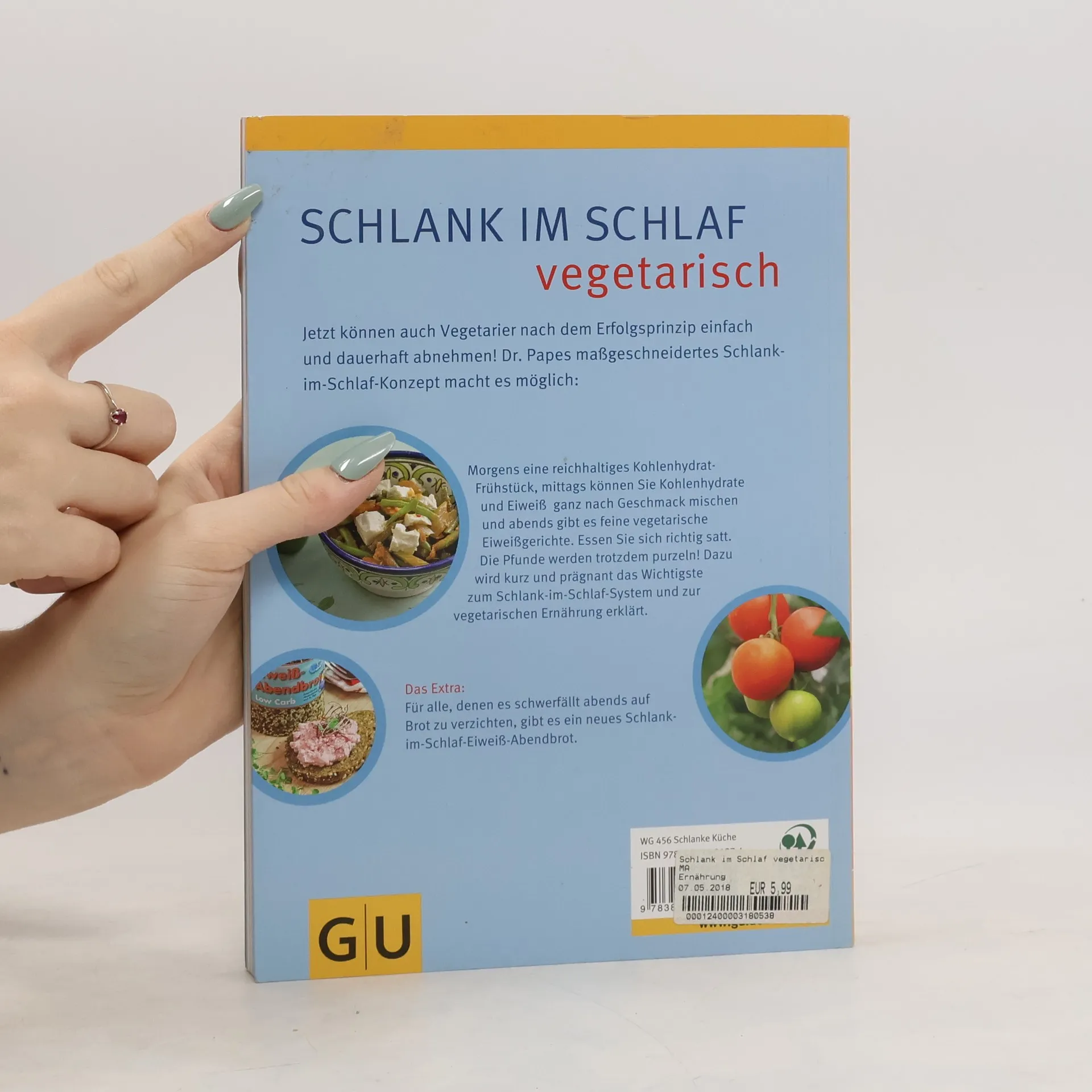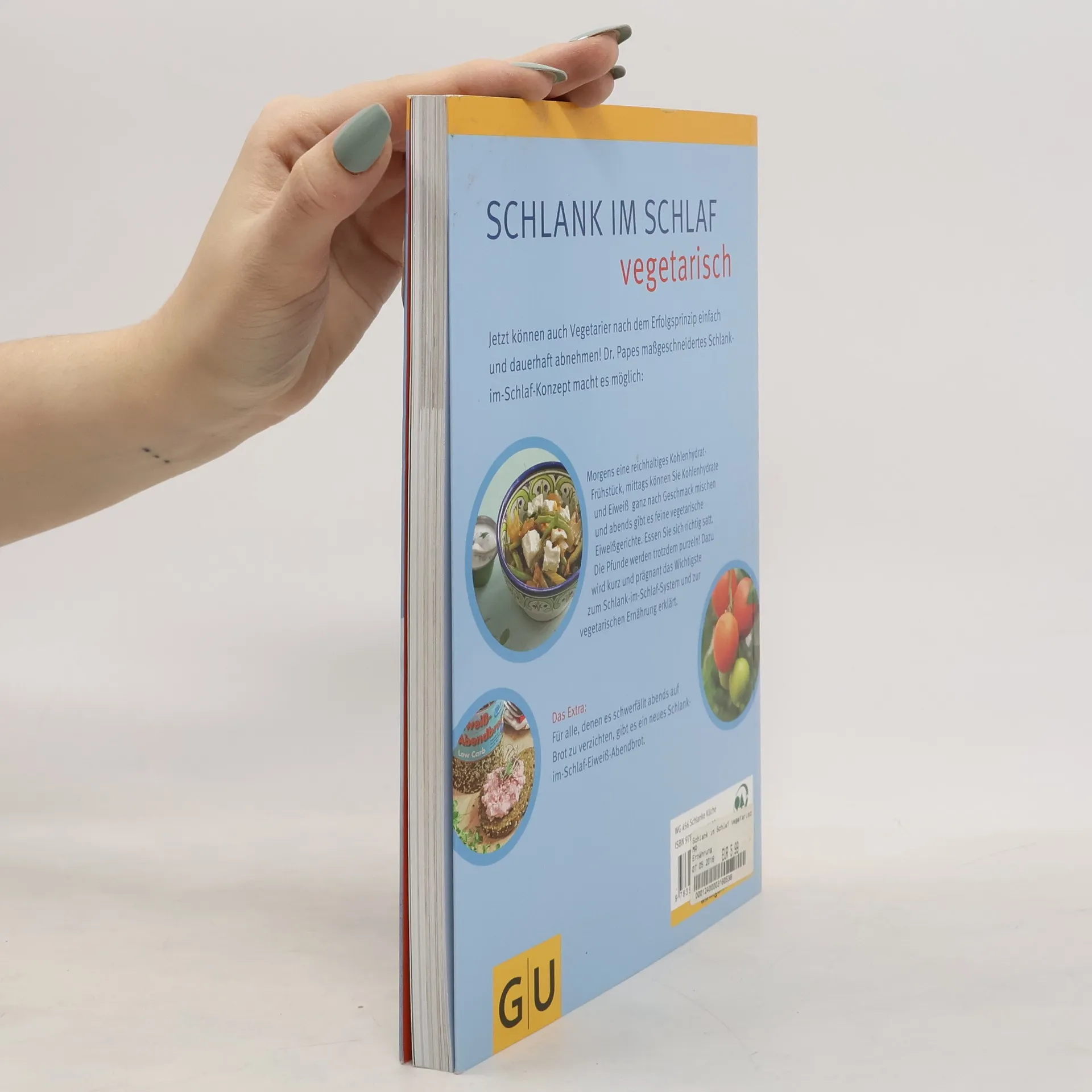 Jetzt können auch Vegetarier nach dem Erfolgsprinzip einfach und dauerhaft abnehmen! Dr. Papes maßgeschneidertes Schlank-im-Schlaf-Konzept macht es möglich. Mit den leckeren vegetarischen Gerichten dürfen Sie schlemmen. Morgens eine reichhaltiges Frühstück, mittags essen Sie nach Lust und Laune und abends feine vegetarische Eiweißgerichte. Essen Sie sich richtig satt. Die Pfunde werden trotzdem purzeln! Und für alle, denen es schwerfällt abends auf Brot zu verzichten, gibt es ein neues Schlank-im-Schlaf-Eiweiß-Brot. Es ist bereits in vielen Bäckereien erhältlich. Oder sie bestellen sich eine Backmischung zum Selberbacken. Auch dazu finden Sie Tipps und Rezepte im Buch. Gut essen und gesund abnehmen - werden auch Sie Schlank im Schlaf.