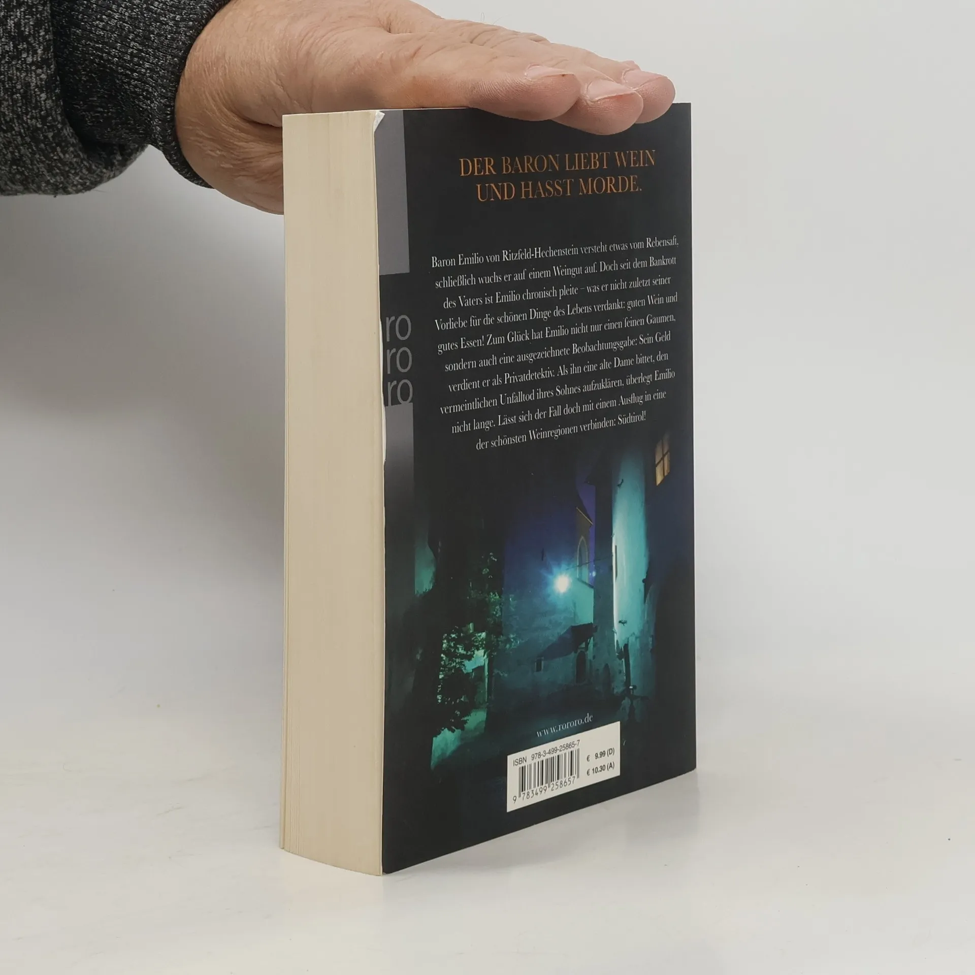 Der Baron liebt Wein und hasst Morde. Baron Emilio von Ritzfeld-Hechenstein versteht etwas vom Rebensaft, schließlich wuchs er auf einem Weingut auf. Doch seit dem Bankrott des Vaters ist Emilio chronisch pleite – was er nicht zuletzt seiner Vorliebe für die schönen Dinge des Lebens verdankt: guten Wein und gutes Essen! Zum Glück hat Emilio nicht nur einen feinen Gaumen, sondern auch eine ausgezeichnete Beobachtungsgabe: Sein Geld verdient er als Privatdetektiv. Als ihn eine alte Dame bittet, den vermeintlichen Unfalltod ihres Sohnes aufzuklären, überlegt Emilio nicht lange. Lässt sich der Fall doch mit einem Ausflug in eine der schönsten Weinregionen verbinden: Südtirol!