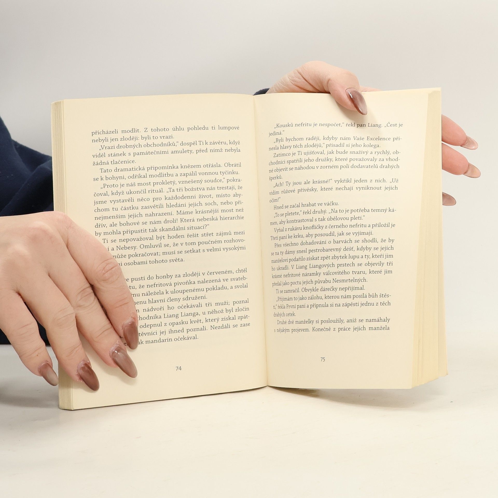 Kdo by se odvážil vydávat se za soudce Ti? Zkušeným zlodějům v přestrojení za soudce a jeho pomocníka se podaří oklamat a okrást bohaté obchodníky s nefri- tem. Soudcova kariéra tak visí na vlásku a hrozí mu vyhnání do hor mezi nevzdělané pastevce. Jeho paní se mu snaží zachránit pověst tím, že mu zajistí služ- by spisovatele, který dokáže umě zkrášlovat zprávy o soudcově vyšetřování. Tou dobou se Ti pouští do deset let starého případu krádeže chrámových soch. Pro záchranu své kariéry neváhá přejít strašidelný most, setkat se s obávanou vražedkyní nebo vyzvat na souboj veslaře každoročních závodů dračích lodí.