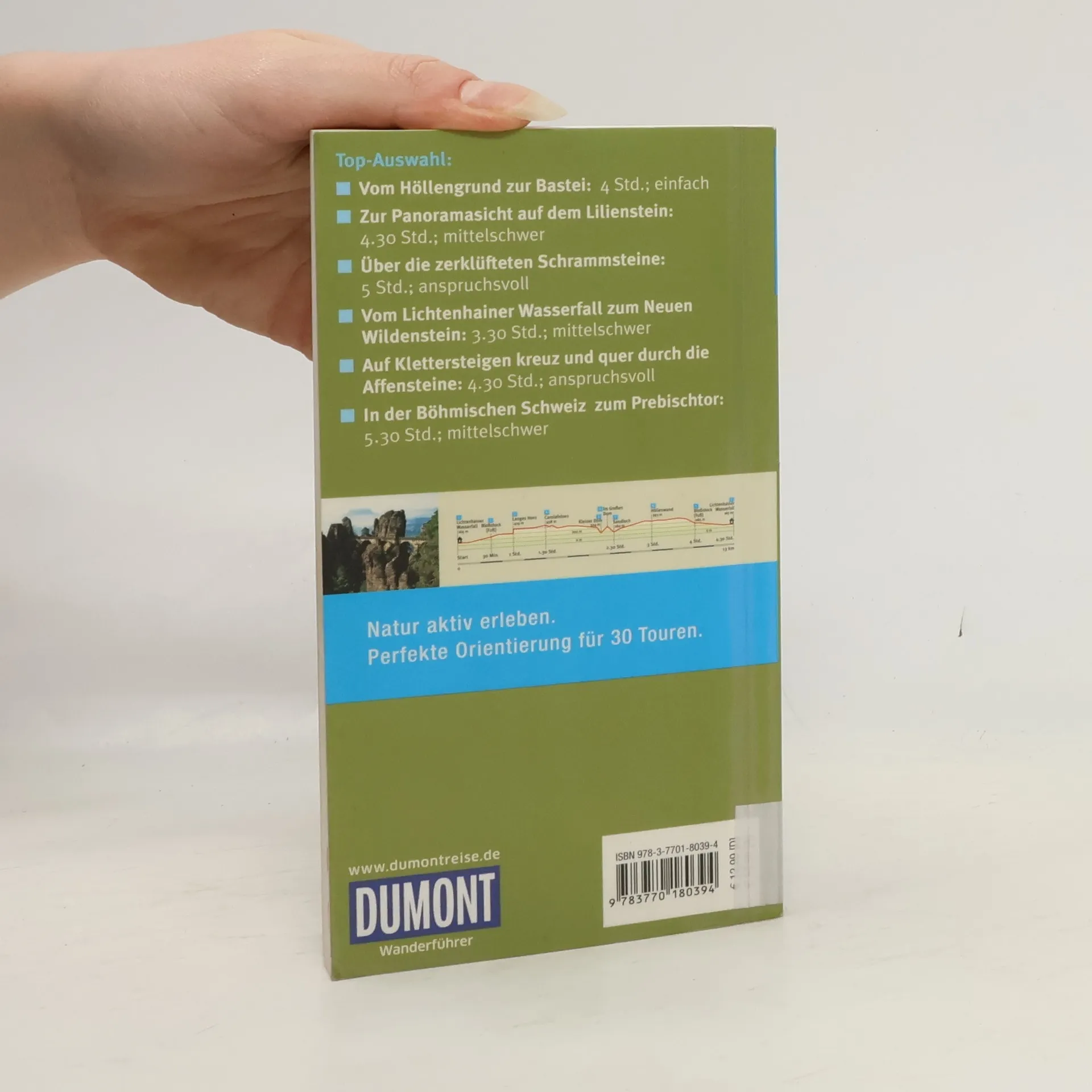 Herrliche Panoramawege, wundervolle Rundwanderungen und markante Felsformationen hoch über dem Elbetal erwarten Sie in der Sächsischen Schweiz und im Elbsandsteingebirge, zwischen Dresden und der Grenze zu Tschechien. Jede der 30 Touren ermöglicht einen perfekten Wandertag: Exakte Wegbeschreibung, Karte und Höhenprofil sind jeweils durch die zugeordneten Wegpunkte eng aufeinander abgestimmt und machen die Orientierung einfach. Konkrete Angaben zu Dauer, Länge und Schwierigkeitsgrad, zu Anfahrtswegen und Einkehrmöglichkeiten erleichtern die Planung. Praktische Wandertipps und ein kurzer Magazinteil stimmen auf die Region ein. Hans Brichzin macht bei jeder Wanderung auf Sehenswertes am Wegesrand aufmerksam, er gibt Tipps für besondere Pausenorte und Abstecher. Mit Überblickskarte und Register ist jeder Ort und jede Tour schnell gefunden.