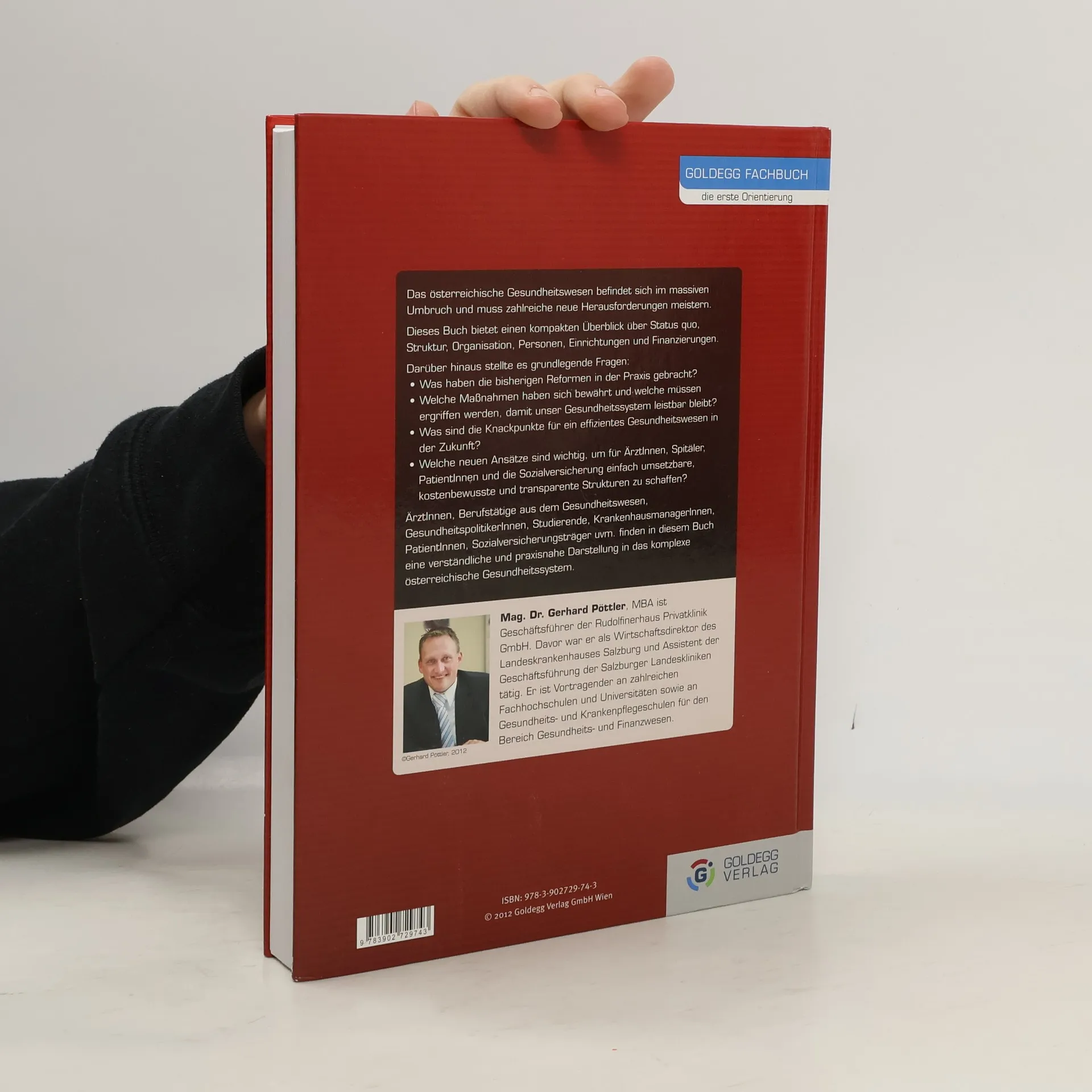 Goldegg Fachbuch – die erste Orientierung Das österreichische Gesundheitssystem befindet sich im massiven Umbruch und hat zahlreiche neue Herausforderungen zu meistern. Die Medizin ist die Disziplin mit dem höchsten Wissenszuwachs. Es stellen sich zukunftsweisende Fragen: Ist unser System noch sozial genug? Steht der Patient im Mittelpunkt der Aufmerksamkeit? Ist die Finanzierung in der bisherigen Form überhaupt noch möglich? Wie lange werden sich die Bundesländer landeseigene Krankenanstalten noch leisten können? Es gibt derzeit kein anderes Werk, das einen gerafften Überblick über Status quo, Struktur, Organisation, Personen, Aufbau, Einrichtungen, Finanzierung und Reformen des österreichischen Gesundheitssystems verschafft. Das Buch bietet eine unverzichtbare Hilfe für Berufstätige aus dem Gesundheitswesen, Gesundheitspolitiker, am Gesundheitswesen interessierte Menschen sowie auszubildende Personen.