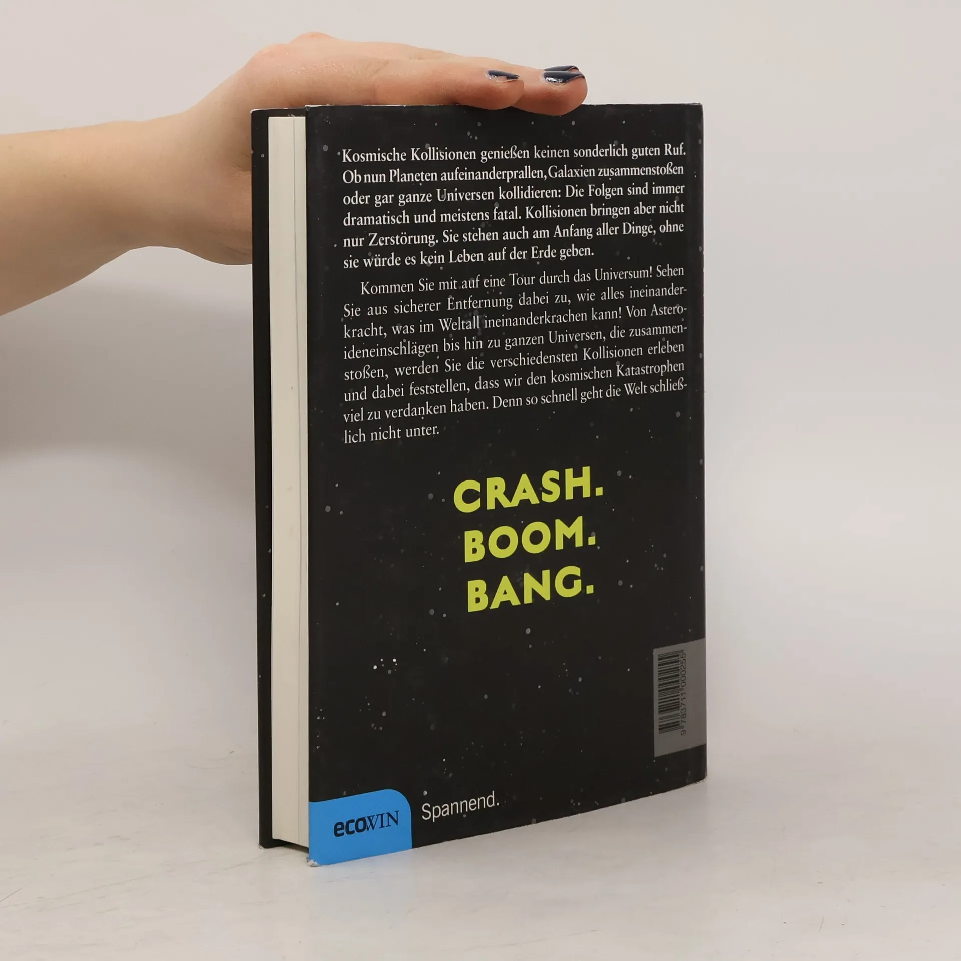 Kosmische Kollisionen genießen keinen sonderlich guten Ruf. Ob nun Planeten aufeinanderprallen, Galaxien zusammenstoßen oder gar ganze Universen kollidieren: Die Folgen sind immer dramatisch und meistens fatal. Kollisionen bringen aber nicht nur Zerstörung. Sie stehen auch am Anfang aller Dinge, ohne sie würde es kein Leben auf der Erde geben. Kommen Sie mit auf eine Tour durch das Universum! Sehen Sie aus sicherer Entfernung dabei zu, wie alles ineinanderkracht, was im Weltall ineinanderkrachen kann! Von Asteroideneinschlägen bis hin zu ganzen Universen, die zusammenstoßen, werden Sie die verschiedensten Kollisionen erleben und dabei feststellen, dass wir den kosmischen Katastrophen viel zu verdanken haben. Denn so schnell geht die Welt schließlich nicht unter.