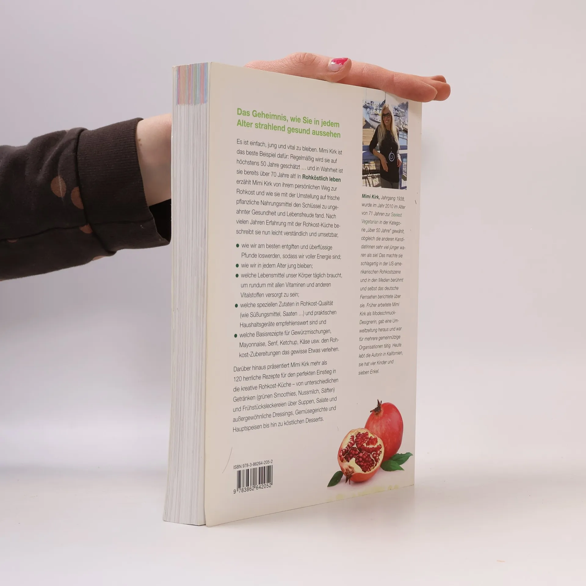 Das Geheimnis, wie Sie in jedem Alter strahlend gesund aussehen Es ist einfach, jung und vital zu bleiben. Mimi Kirk ist das beste Beispiel dafür: Regelmäßig wird sie auf höchstens 50 Jahre geschätzt … und in Wahrheit ist sie bereits über 70 Jahre alt! In Rohköstlich leben erzählt Mimi Kirk von ihrem persönlichen Weg zur Rohkost und wie sie mit der Umstellung auf frische pflanzliche Nahrungsmittel den Schlüssel zu ungeahnter Gesundheit und Lebensfreude fand. Nach vielen Jahren Erfahrung mit der Rohkost-Küche beschreibt sie nun leicht verständlich und umsetzbar, wie wir am besten entgiften und überflüssige Pfunde loswerden, sodass wir voller Energie sind; wie wir in jedem Alter jung bleiben; welche Lebensmittel unser Körper täglich braucht, um rundum mit allen Vitaminen und anderen Vitalstoffen versorgt zu sein; welche speziellen Zutaten in Rohkost-Qualität (wie Süßungsmittel, Saaten …) und praktischen Haushaltsgeräte empfehlenswert sind und welche Basisrezepte für Gewürzmischungen, Mayonnaise, Senf, Ketchup, Käse usw. den Rohkost-Zubereitungen das gewisse Etwas verleihen. Darüber hinaus präsentiert Mimi Kirk mehr als 120 herrliche Rezepte für den perfekten Einstieg in die kreative Rohkost-Küche – von unterschiedlichen Getränken (grünen Smoothies, Nussmilch, Säften) und Frühstücksleckereien über Suppen, Salate und außergewöhnliche Dressings, Gemüsegerichte und Hauptspeisen bis hin zu köstlichen Desserts.