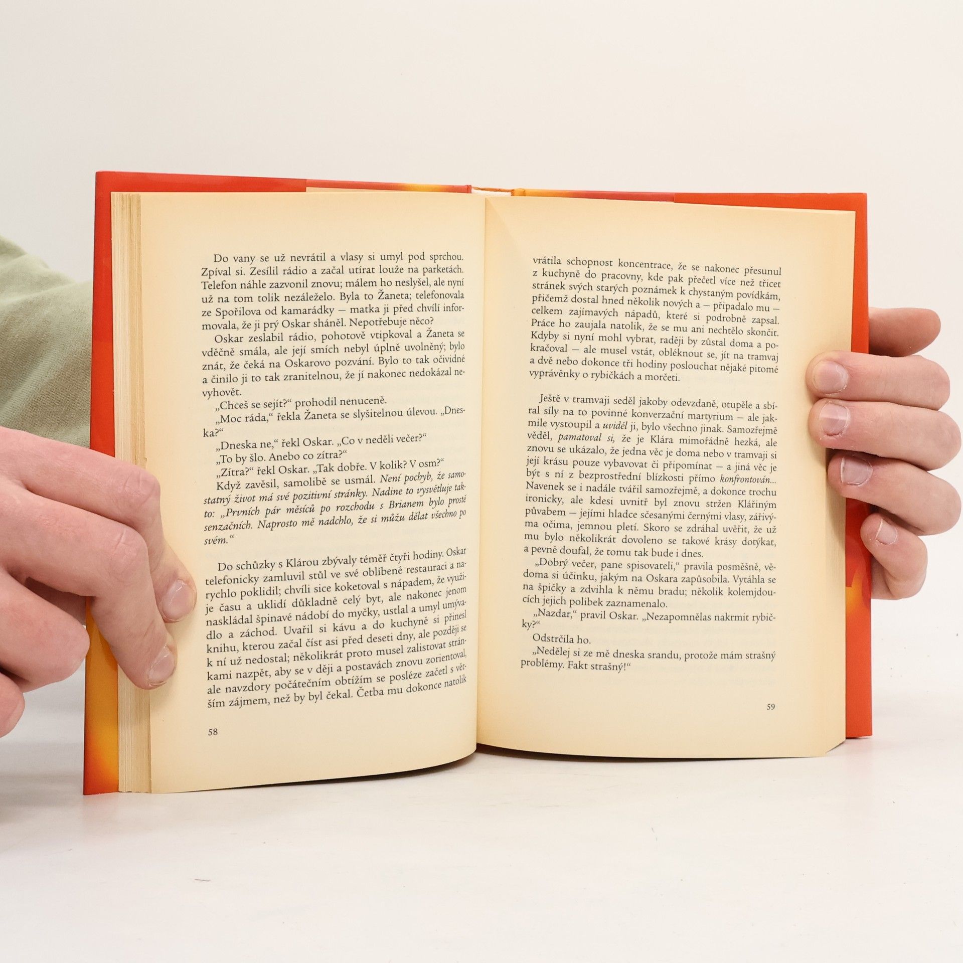"K případné otázce, z jakých pochybných pohnutek jsem si zvolil právě téma sexu, bych nejprve rád uvedl několik stručných čísel (čísla nelžou): Podle Světové zdravotnické organizace myslí žena na sex v průměru třicetkrát denně, a to i v klimakteriu; muž, bez ohledu na věk, průměrně každých osm minut. Podle šetření českých sexuologů má český muž za svůj život v průměru dvanáct intimních partnerek; současná česká dívka stihne do svých devětadvaceti let vystřídat více než šest sexuálních partnerů. Nyní se snad už mohu odvážit říci, že jsem si téma sexu zvolil z pohnutek víceméně osobních." Michal Viewegh