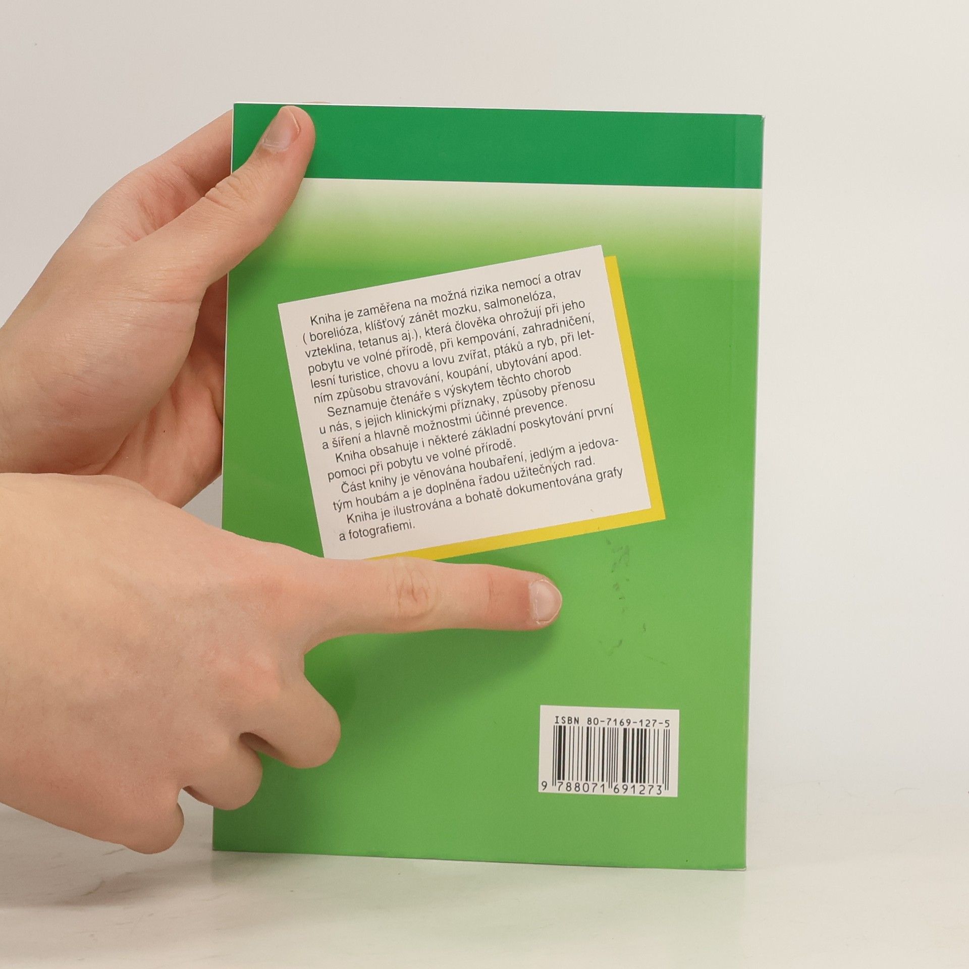 Kniha je zaměřena na možná rizika nemocí a otrav ( borelioza, klíšťový zánět mozku, salmoneloza, vzteklina, tetanus aj..) která člověka ohrožují při jeho pobytu ve volné přírodě, při kempování, zahradničení, lesní turistice, chovu a lovu zvířat, ptáků a ryb, při letním způsobu stravování, koupání, ubytování apod.