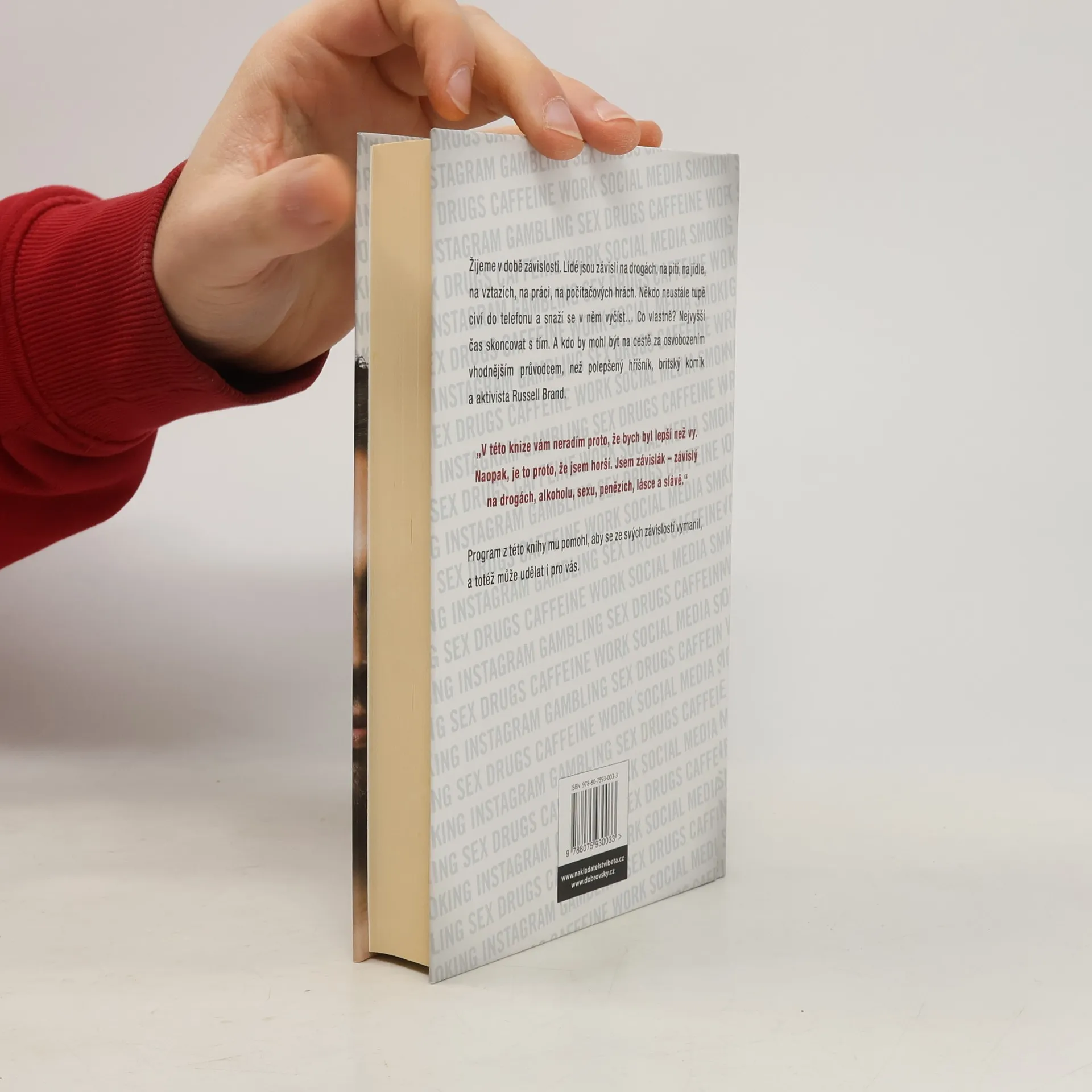 Žijeme v době závislosti. Je to věc natolik zakořeněná a všeobjímající a všudypřítomná, že si ani neuvědomíte, že ji máte – pokud nemáte to štěstí, že jste extrémním případem. Lidé jsou závislí na pití, na jídle, na vztazích, na práci, někdo neustále tupě civí do telefonu a snaží se v něm vyčíst…, co vlastně? Nejvyšší čas skoncovat s tím. A kdo by mohl být na cestě za osvobozením vhodnějším průvodcem, než polepšený hříšník, britský komik a aktivista Russell Brand. Program z této knihy mu pomohl, aby se ze všech závislostí vymanil, a totéž může udělat i pro vás. Nenabízí nic menšího než, že se osvobodíte od zahleděnosti do sebe sama, získáte novou perspektivu a zbavíte se iluze toho, že trpíte. „V této knize vám neradím proto, že bych byl lepší než vy. Naopak, je to proto, že jsem horší. Jsem závislák – závislý na drogách, alkoholu, sexu, penězích, lásce a slávě.“