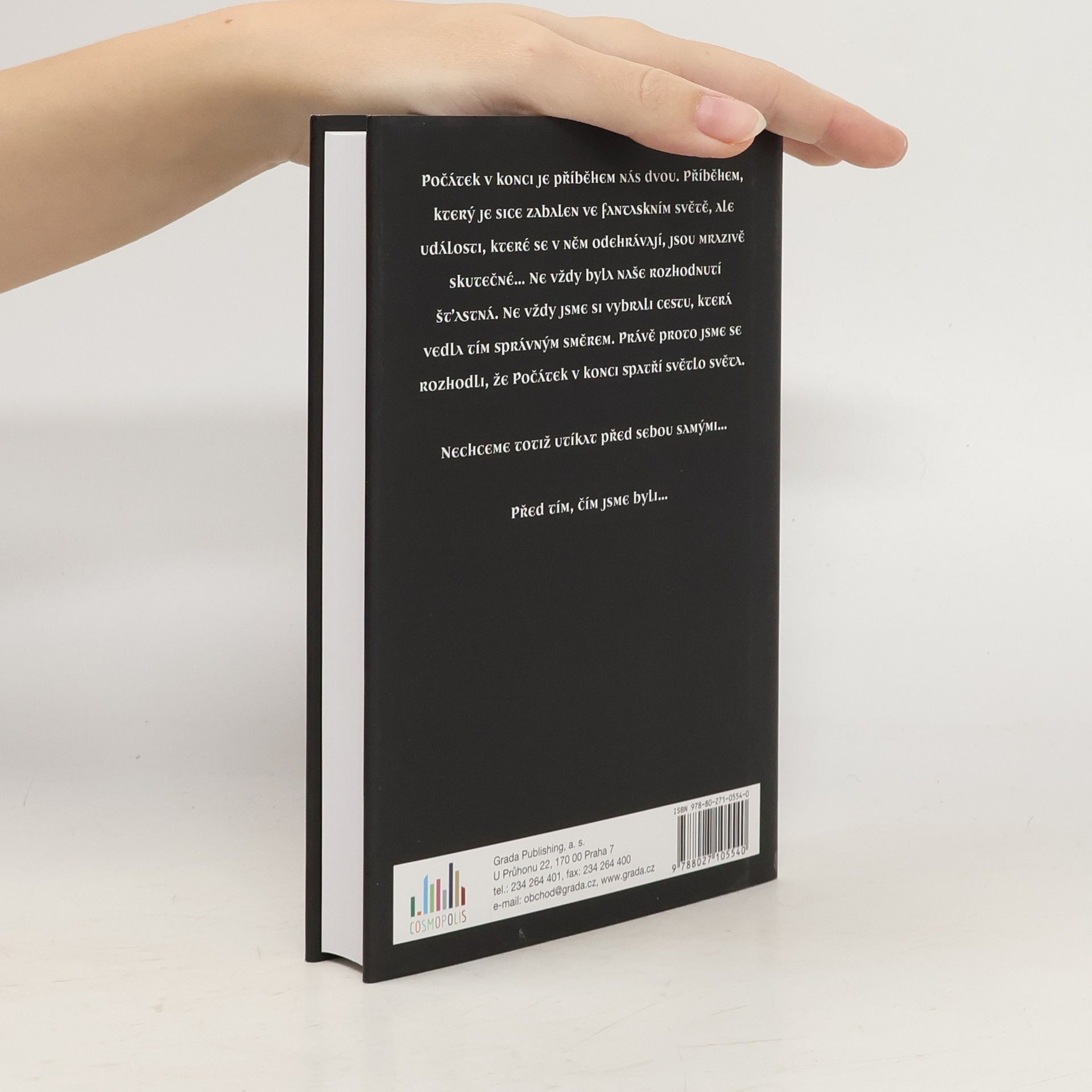Počátek v konci je příběhem nás dvou. Příběhem, který je sice zabalen ve fantaskním světě, ale události, které se v něm odehrávají, jsou mrazivě skutečné… Ne vždy byla naše rozhodnutí šťastná. Ne vždy jsme si vybrali cestu, která vedla tím správným směrem. Právě proto jsme se rozhodli, že Počátek v konci spatří světlo světa. Nechceme totiž utíkat před sebou… Před tím, čím jsme byli.