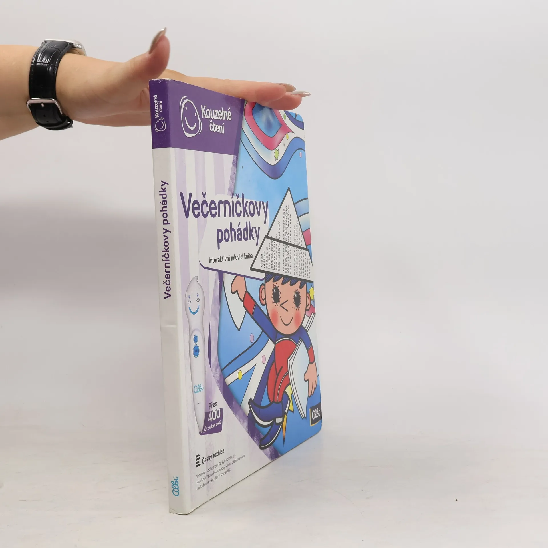 Kouzelné pohádky s ALBI tužkou Poslechněte si klasické české pohádky v podání Václava Postráneckého a Mileny Steinmasslové. Kniha obsahuje osm pohádek - mezi nimi například pohádky Zlatovláska, Tři zlaté vlasy děda Vševěda, O Popelce, Chytrá horákyně a další. Kniha je doplněna o zábavné kvízy, které děti zcela jistě nadchnou a zabaví na dlouhou dobu. Kniha kouzelných pohádek obsahuje přes 400 zvuků a textů, vznikla ve spolupráci s Českým rozhlasem a namluvili Václav Postránecký, Milena Steinmasslová, Lenka Krupanská a René Krupanský.