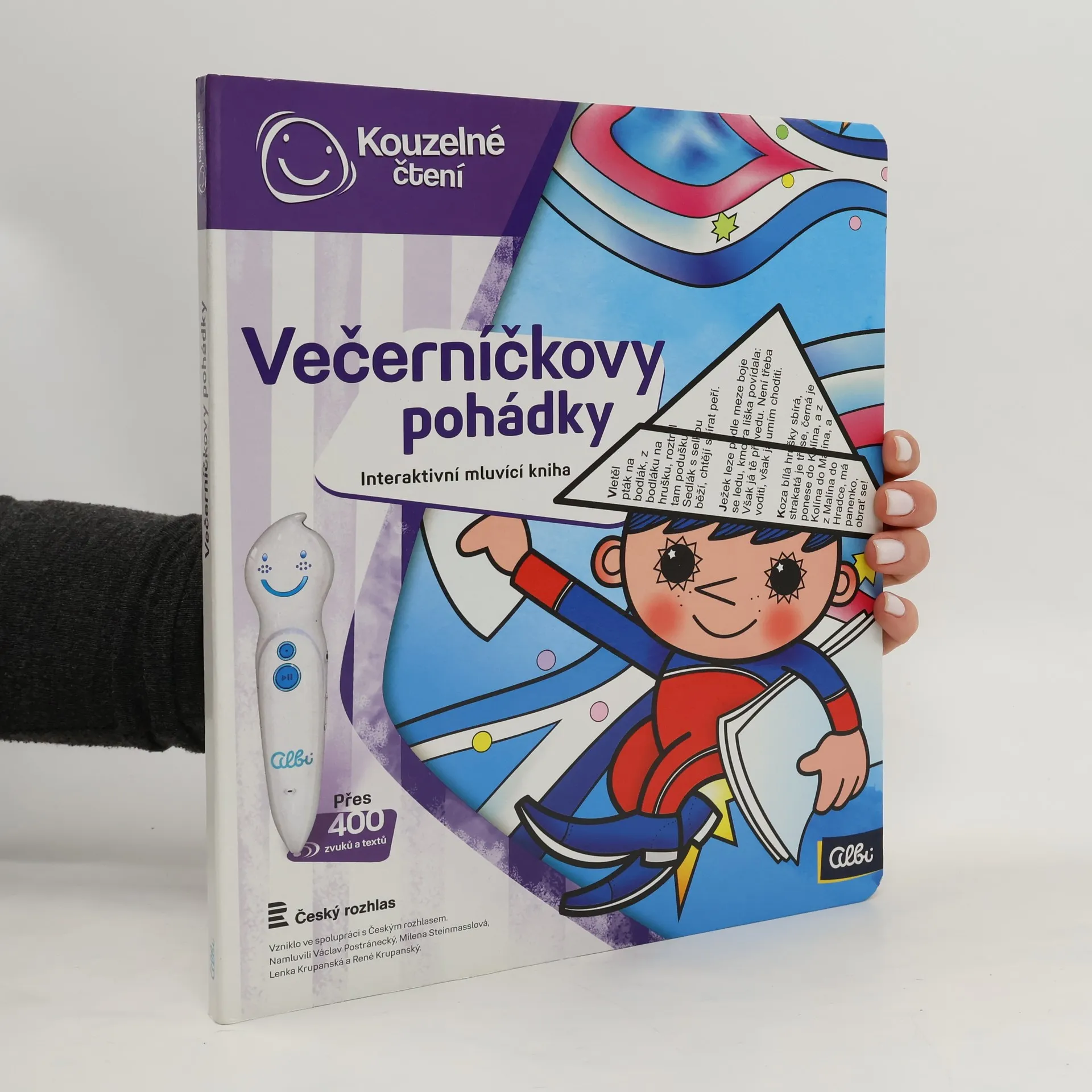 Kouzelné pohádky s ALBI tužkou Poslechněte si klasické české pohádky v podání Václava Postráneckého a Mileny Steinmasslové. Kniha obsahuje osm pohádek - mezi nimi například pohádky Zlatovláska, Tři zlaté vlasy děda Vševěda, O Popelce, Chytrá horákyně a další. Kniha je doplněna o zábavné kvízy, které děti zcela jistě nadchnou a zabaví na dlouhou dobu. Kniha kouzelných pohádek obsahuje přes 400 zvuků a textů, vznikla ve spolupráci s Českým rozhlasem a namluvili Václav Postránecký, Milena Steinmasslová, Lenka Krupanská a René Krupanský.