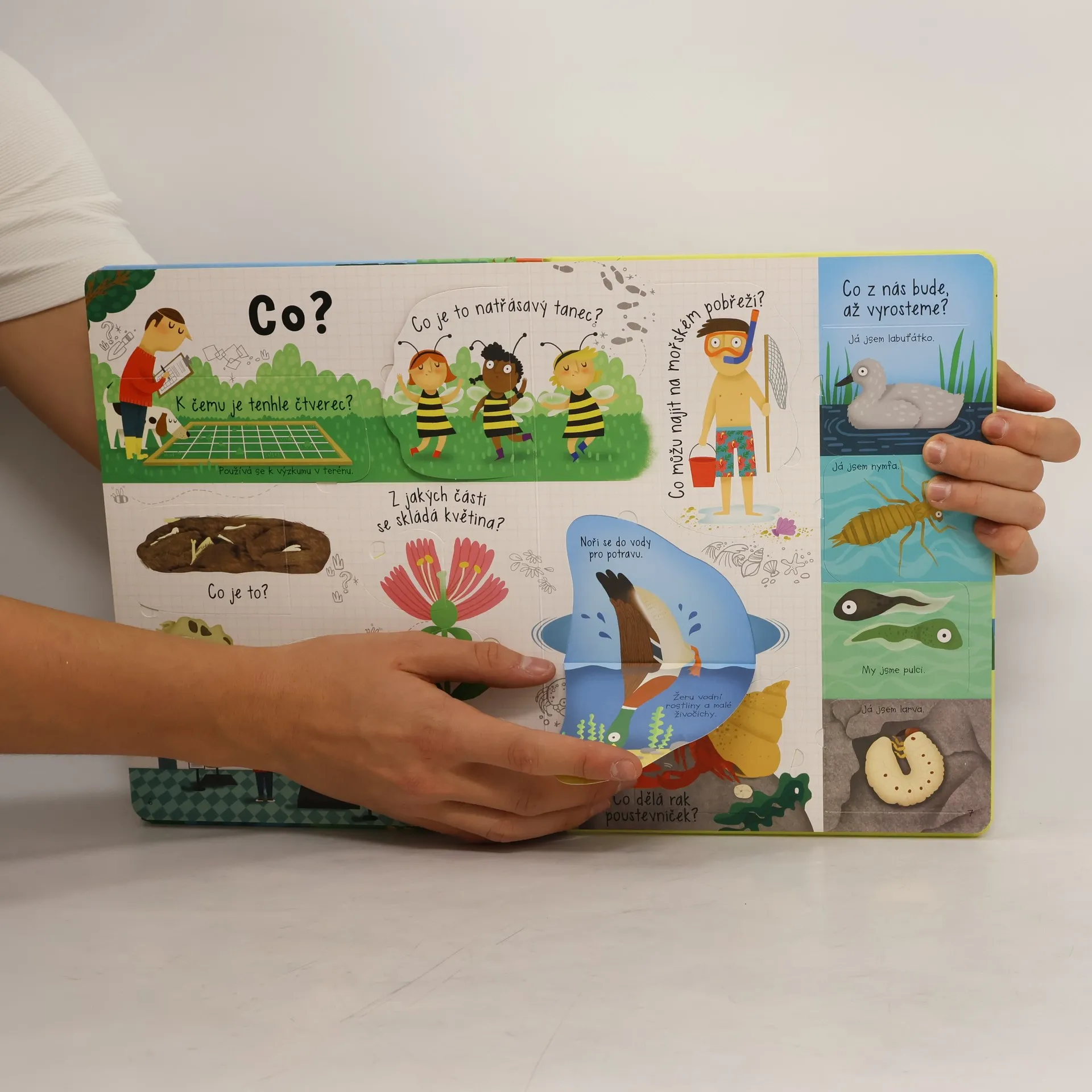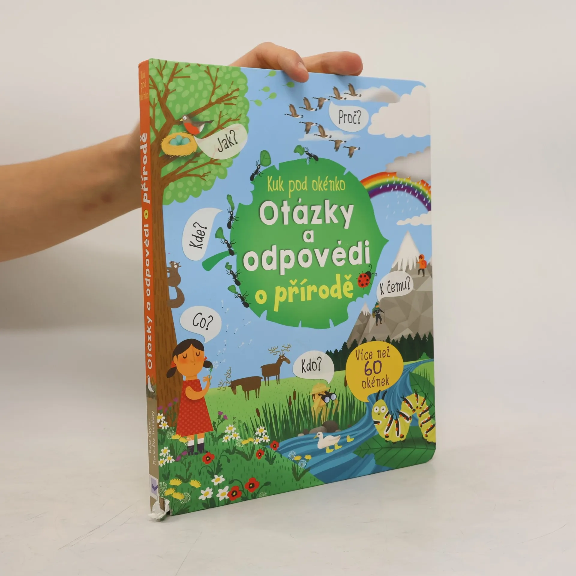 Rozhlédni se. Příroda je všude kolem tebe! A ty máš určitě spoustu otázek. Kde se berou mraky? Proč krtci dělají krtince a včely vyrábějí med? Kde se berou semínka? Je ve městech taky příroda? A můžu krmit motýly? Jak můžu vypěstovat rostlinu? A dokážu podle mraků odhadnout, jaké bude počasí? To všechno a mnohem více se dozvíš v této bohatě ilustrované knize. Stačí odklopit okénka, kterých je uvnitř knihy více než 60, a hned se dozvíš všechno, co tě o přírodě, rostlinách, stromech, řekách, mracích a zvířatech zajímá.