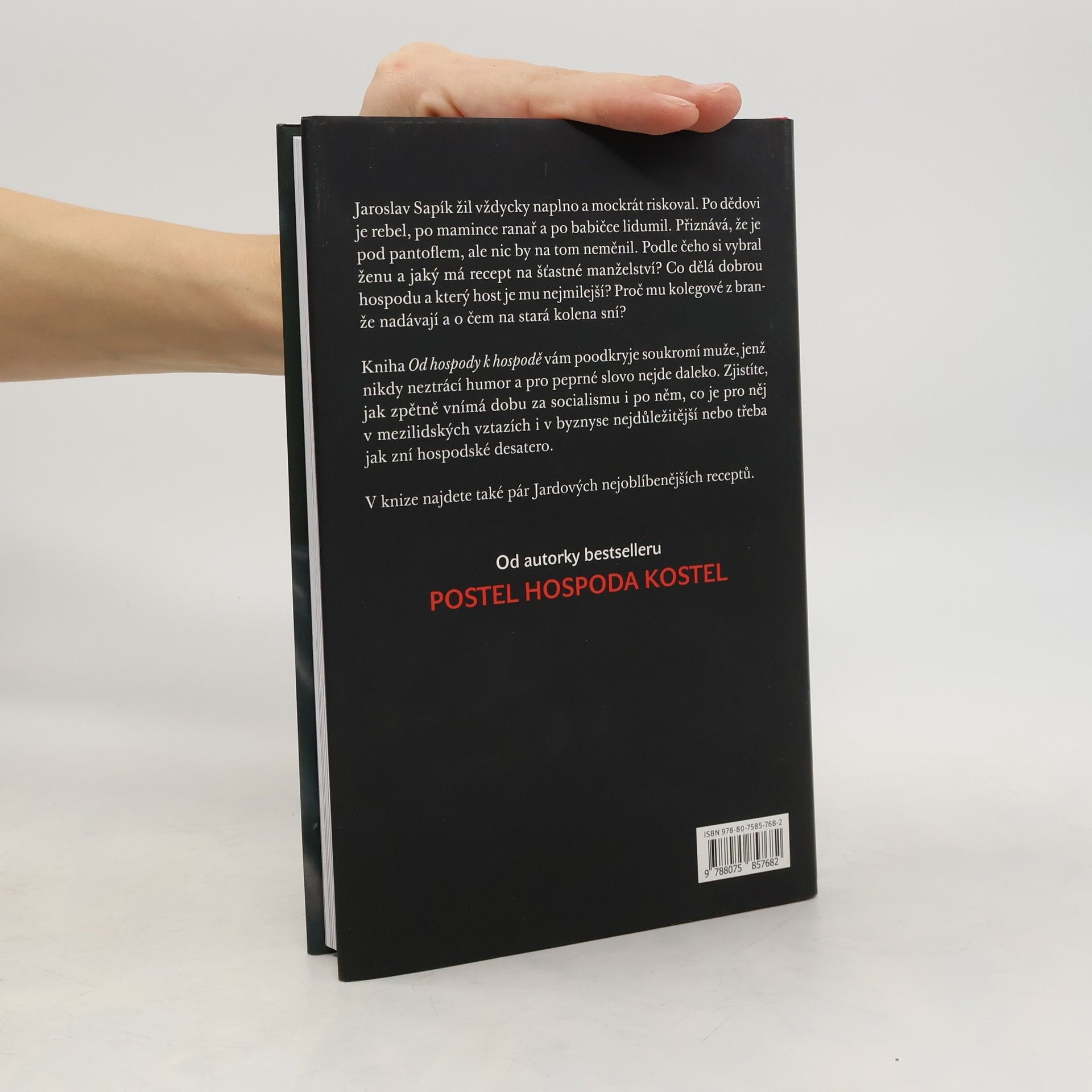Autorka bestselleru Postel hospoda kostel, knihy, jež v Magnesii Liteře získala Kosmas cenu čtenářů, tentokrát zpovídá oblíbeného českého kuchaře. Jaroslav Sapík žil vždycky naplno a mockrát riskoval. Po dědovi je rebel, po mamince ranař a po babičce lidumil. Přiznává, že je pod pantoflem, ale nic by na tom neměnil. Podle čeho si vybíral ženu a jaký má recept na šťastné manželství? Co dělá dobrou hospodu a který host je mu nejmilejší? Koho nejvíc nesnáší a kde je nejšťastnější? Proč mu kolegové z branže nadávají a komu nejvíc závidí? Kniha Od hospody k hospodě vám poodkryje soukromí muže, jenž nikdy neztrácí humor a pro peprné slovo nejde daleko. Zjistíte, jak zpětně vnímá dobu za socialismu i po něm, co je pro něj v mezilidských vztazích i v byznyse nejdůležitější nebo třeba jak zní hostinské desatero. Na konci knihy najdete samozřejmě i recepty a fotografie, Jarda je uvařil speciálně pro tuto příležitost. Vybíral dlouho a pečlivě, nakonec zůstaly jen jeho nejmilejší.