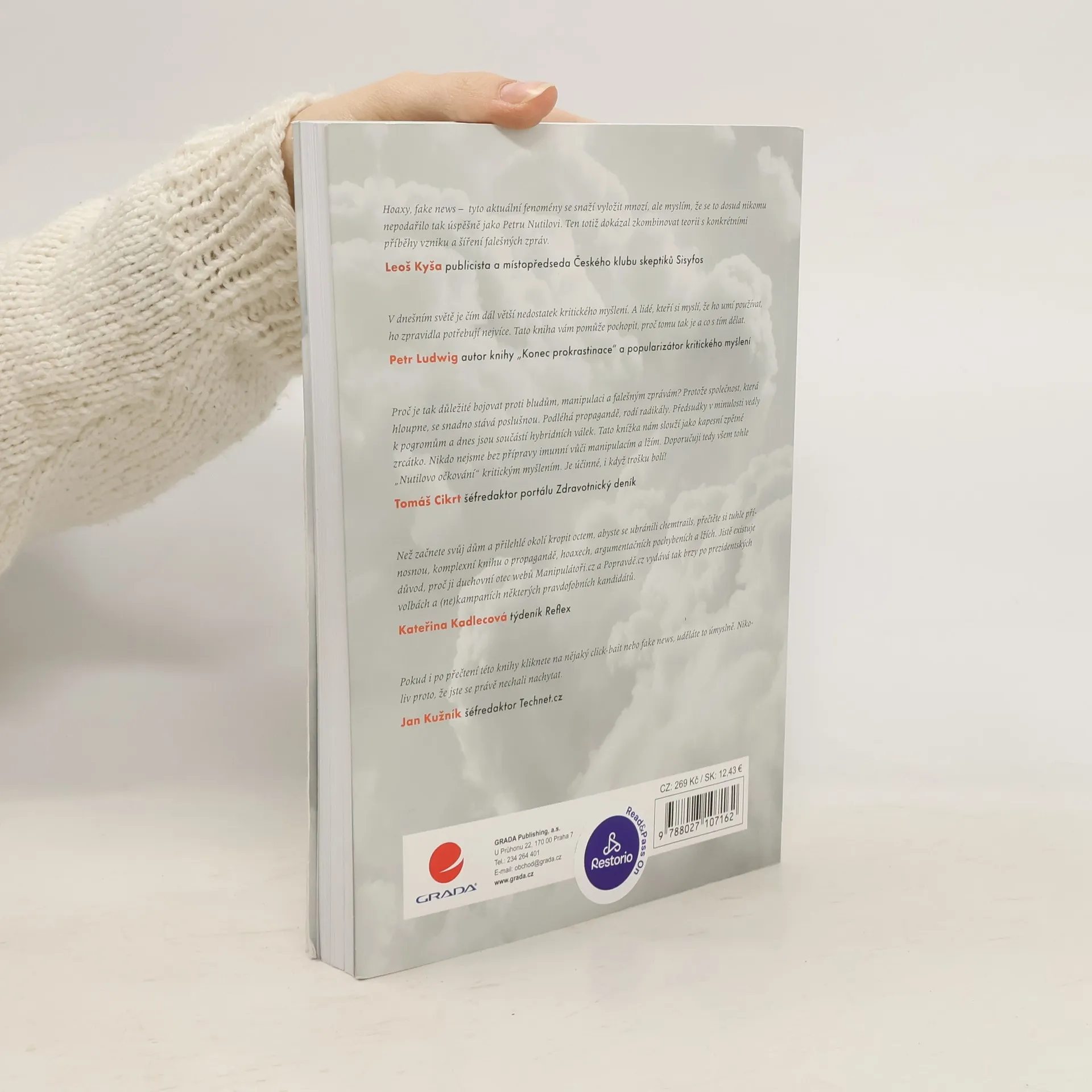 - Jak jsme manipulováni a nevíme o tom? - Co jsou to hoaxy? - Ukazují média svět takový, jaký skutečně je? - Proč nám politici lžou? - Co je to mediální gramotnost? - Proč je potřeba kritické myšlení? - A jak si s námi zahrává mozek? To jsou jen některé z aktuálních otázek, na které najdete odpovědi v této knize. Jejím autorem je spoluzakladatel webu manipulatori.cz, který se snaží podporovat nezávislé a kritické myšlení a odkrývat mediální lži. V první části knihy odhalíte zákonitosti našeho chování a rozhodování. Zjistíte, proč naše přání tak často formují budoucnost, pochopíte, jak nás ovlivňuje naše vlastní iracionalita, proč podléháme skupinové hlouposti a jak snadno se dopouštíme myšlenkových chyb. Druhá část knihy se věnuje žhavé současnosti. Zaměřuje se na běžně užívané argumentační fauly a na odhalení manipulativních a propagandistických postupů v politice i médiích. Poznáte zákulisí mediálního průmyslu a výroby zpráv i techniky, jak námi média mohou manipulovat. A v neposlední řadě porozumíte tomu, jak odhalovat falešné zprávy, poznat pravdu od lži a nepodlehnout konspiračnímu myšlení.