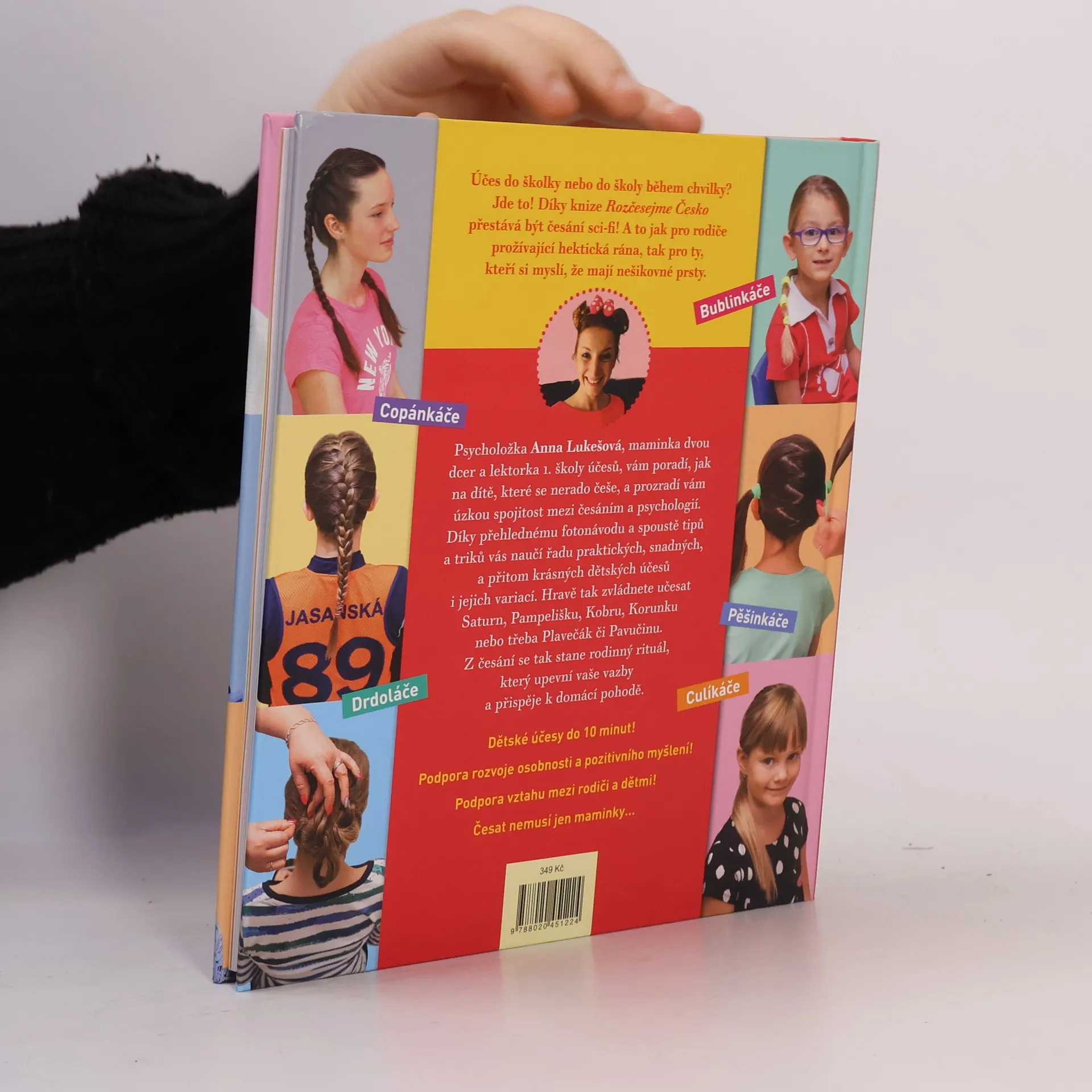 Dětské účesy do 10 minut. Účes do školy a do školky během chvilky? Jde to! Díky knize Rozčesejme Česko přestává být česání sci-fi! A to jak pro maminky prožívající hektická rána, tak pro ty, kdo si myslí, že mají nešikovné prsty. Psycholožka Anna Lukešová, maminka dvou dcer a lektorka 1. školy účesů, vám poradí, jak na dítě, které se nerado češe, a prozradí úzkou spojitost mezi česáním a psychologií. Originálním způsobem, kterým je přehledný fotonávod či videonávod pod QR kódem, se naučíte řadu účesů i jejich variací. Hravě tak zvládnete učesat Saturn, Pampelišku, Kobru, Levanduli, Korunku nebo třeba Plavečák či Pavučinu.