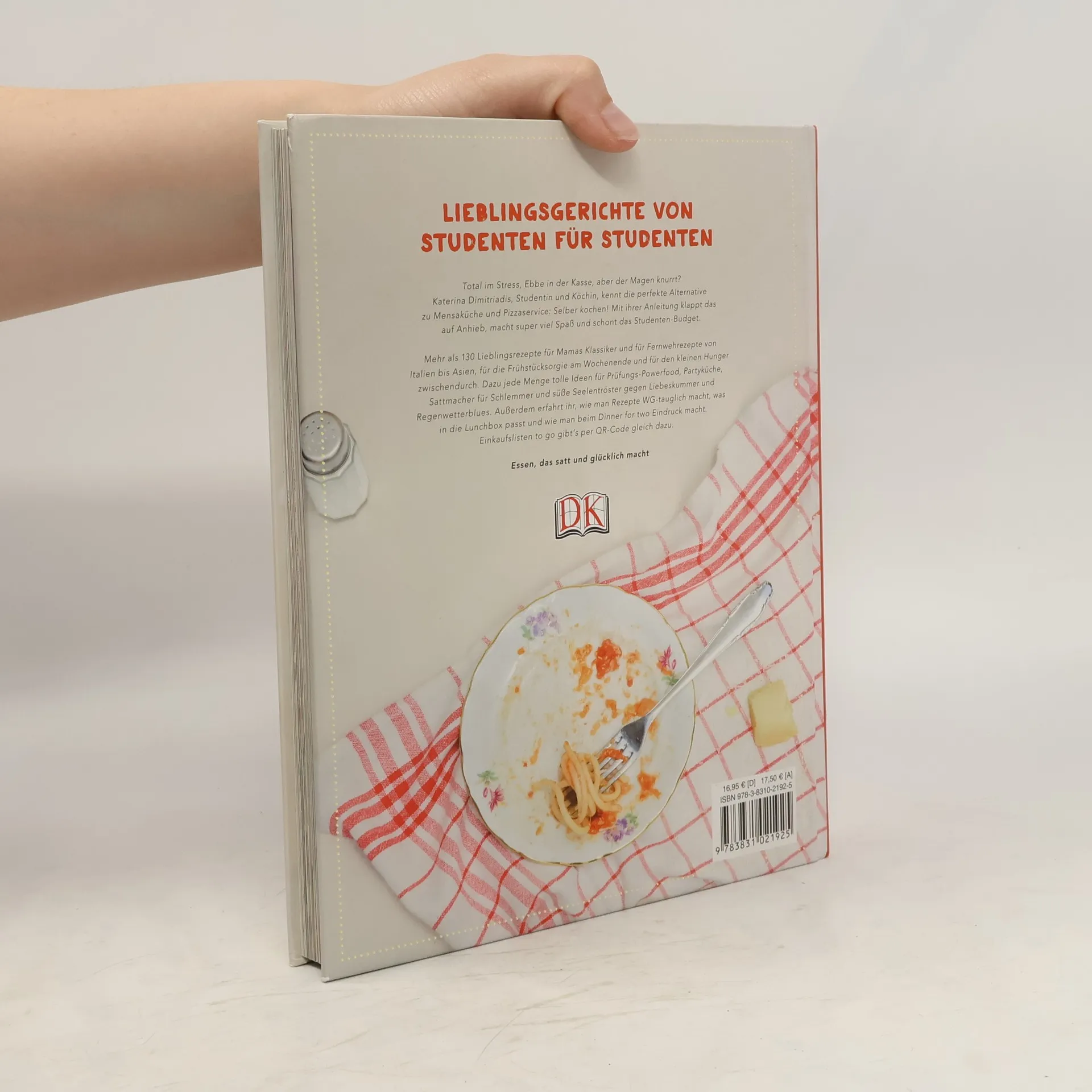 Nie wieder Mensa! Bewährte WG-Klassiker, aber auch verlockende neue Ideen machen Lust, selbst zum Kochlöffel zu greifen und Freunde oder Mitbewohner zu verwöhnen. Jedes der über 130 Rezepte ist für Anfänger geeignet, schnell umsetzbar und auf das studentische Budget zugeschnitten. Mit wenigen im Supermarkt erhältlichen Zutaten, minimalem Aufwand und einem kleinen Kochequipment, stehen schnell leckere Rezepte auf dem Tisch. Praktisch im Gebrauch: Piktogramme verschaffen einen schnellen Überblick über Preiskategorie, Zubereitungszeit und Schwierigkeitsgrad der Rezepte. Von Mamas Klassikern bis zu internationalen Rezepten. Für das Langschläfer-Frühstück oder den kleinen Hunger zwischendurch. Dazu jede Menge tolle Ideen für Prüfungs-Powerfood, Partyküche, Sattmacher für Schlemmer und süße Seelentröster gegen Liebeskummer und Regenwetterblues. Außerdem verrät die Autorin, wie man Rezepte WG-tauglich macht, was in die Lunchbox passt und wie man beim Dinner for two richtig Eindruck schindet! Katerina Dimitriadis ist Studentin der Buchwissenschaft, betreibt aber auch zusammen mit Mutter und Schwester das Restaurant Konstantina in Nürnberg und ist Autorin einer Kochkolumne in den Nürnberger Nachrichten. Die Fotos stammen von Pilar Schacher, Designstudentin und angehende Modefotografin, das Layout von der Grafikerin Andrea Schindler.