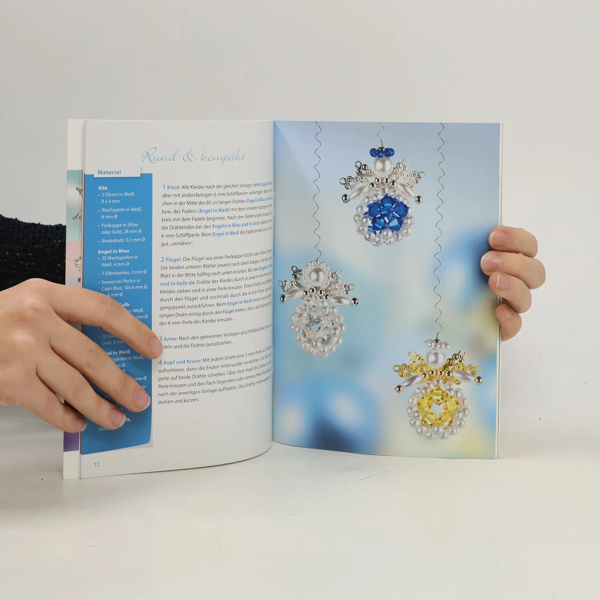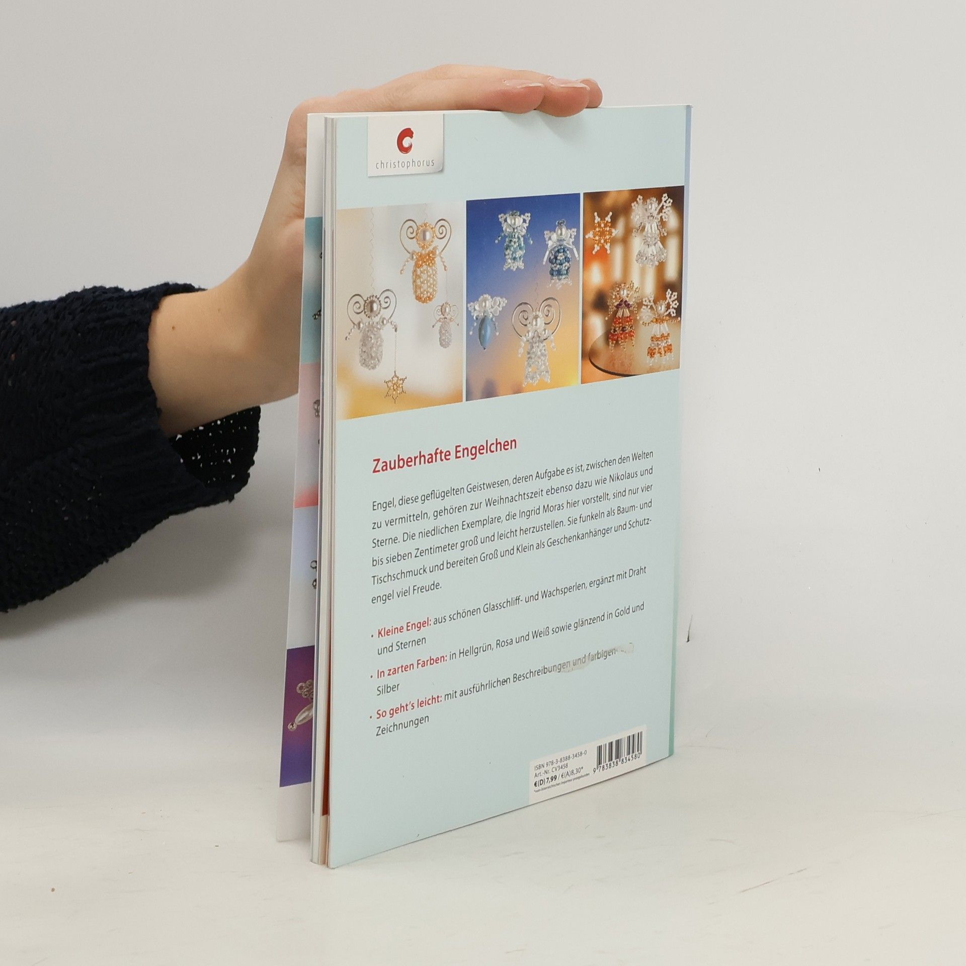 Zauberhafte Engelchen Engel, diese geflügelten Geistwesen, deren Aufgabe es ist, zwischen den Welten zu vermitteln, gehören zur Weihnachtszeit ebenso dazu wie Nikolaus und Sterne. Die niedlichen Exemplare, die Ingrid Moras hier vorstellt, sind nur drei bis vier Zentimeter groß und leicht herzustellen. Sie funkeln als Baum- und Tischschmuck und bereiten Groß und Klein als Geschenkanhänger und Schutzengel viel Freude. Aus schönen Glasschliff- und Wachsperlen, ergänzt mit Draht, in zartem Hellgrün, Rosa und Weiß sowie glänzend in Gold und Silber sind die kleinen Engel mithilfe der ausführlichen Beschreibungen und farbigen Zeichnungen ganz leicht selbst gemacht.