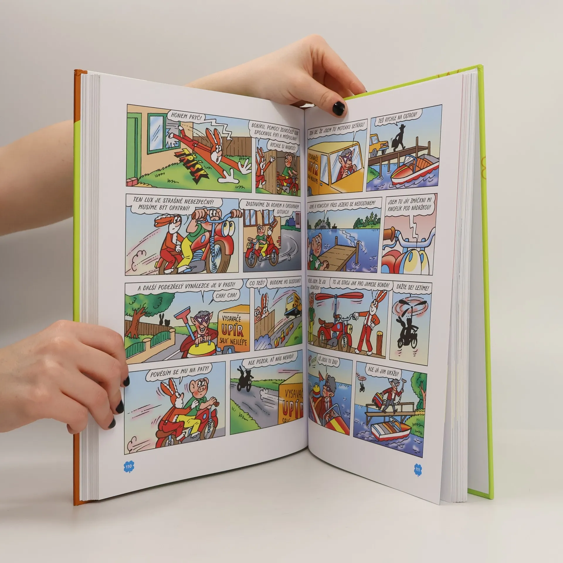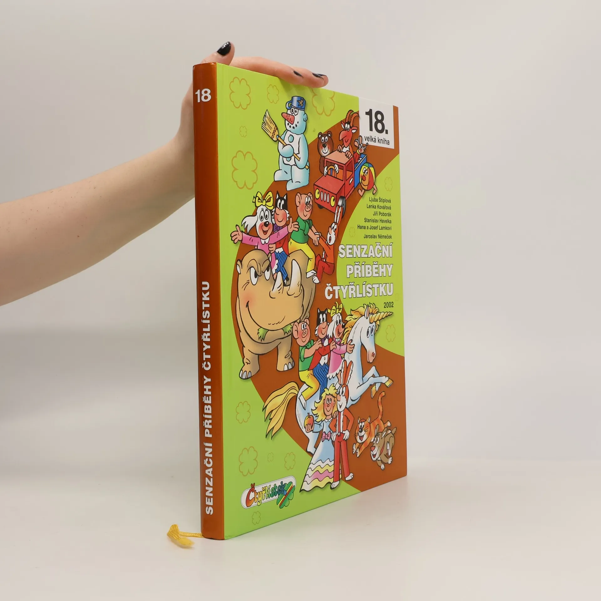 Již osmnáctá velká kniha této oblíbené edice obsahuje příběhy z čísel 327 až 344 z roku 2002. Názvy příběhů jsou: Sopečný výbuch, Neváhej a natoč to!, Golem jde s námi, Starý automat, Dračice, V říši hraček, Sportovci, Sněhulák v poušti, Poprask v zoo, V zajetí včel, Zakletá motorka, Kouzelník Lamudán, Jednorožec, Patálie s Vulkánem, Vlak do Bubákova, Maxijablko, Dva za jednoho, Smlouva s čertem. Všechny tyto příběhy mají jedno společné. A to, že jsou plné dobrodružství, napětí, humoru a především kamarádství. Vždyť čtyři přátelé z Třeskoprsk baví děti již celých padesát let. S Fifinkou, Myšpulínem, Bobíkem a Pinďou zažijete při čtení této knížky spoustu dobré zábavy a zjistíte, že ani po letech neztratili nic z poetiky, kterou jim svým nezaměnitelným způsobem vdechl Jaroslav Němeček. Kniha obsahuje navíc komiksový příběh Rexík a numerologie od Karla Ladislava s ilustracemi Jaroslava Němečka.