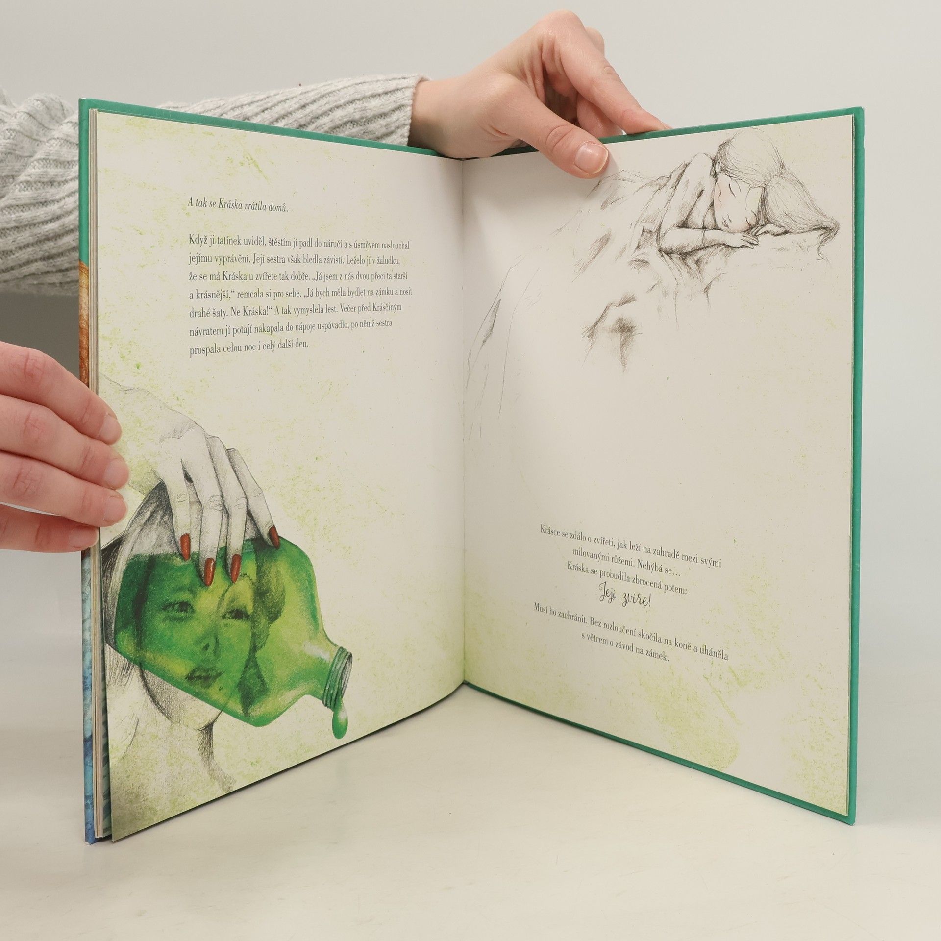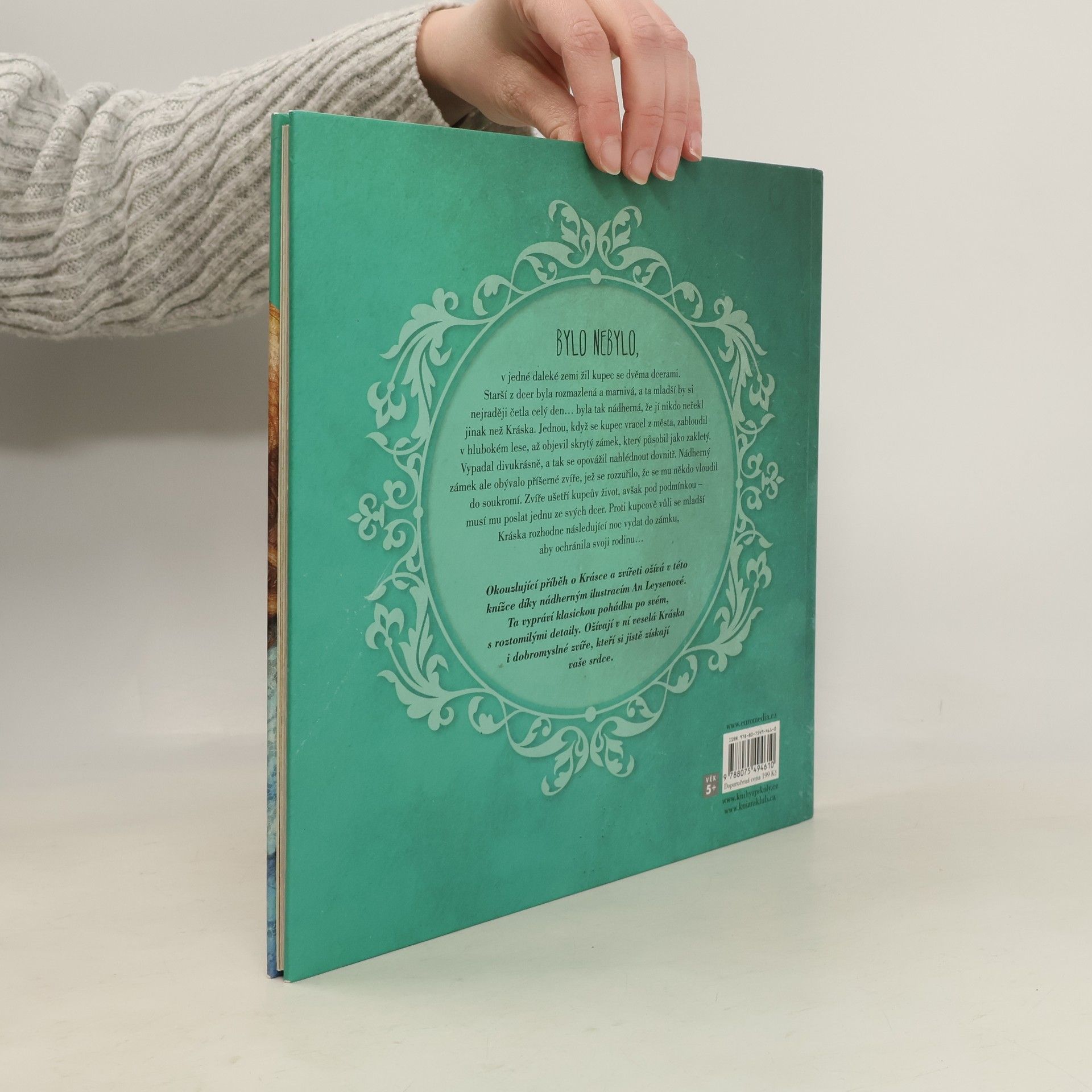 Okouzlující příběh o Krásce a zvířeti ožívá v této knížce díky nádherným ilustracím An Leysenové. Ta vypráví klasickou pohádku po svém, s překvapivými detaily. Ožívají v ní veselá Kráska i dobromyslné zvíře, kteří si jistě získají vaše srdce. V jedné daleké zemi žil kupec se dvěma dcerami. Starší z dcer byla rozmazlená a marnivá, a ta mladší by si nejraději četla celý den... byla tak nádherná, že jí nikdo neřekl jinak než Kráska. Jednou, když se kupec vracel z města, zabloudil v hlubokém lese, až objevil skrytý zámek, který působil jako zakletý. Vypadal divukrásně, a tak se opovážili nahlédnout dovnitř. Nádherný zámek ale obývalo příšerné zvíře, jež se rozzuřilo, že se mu někdo vloudil do soukromí. Zvíře ušetří kupcův život, ale pod jednou podmínkou – musí mu poslat jednu ze svých dcer. Proti kupcově vůli se mladší Kráska rozhodne následující noc vydat do zámku, aby ochránila svoji rodinu... Kniha je určena pro děti od 5 let.