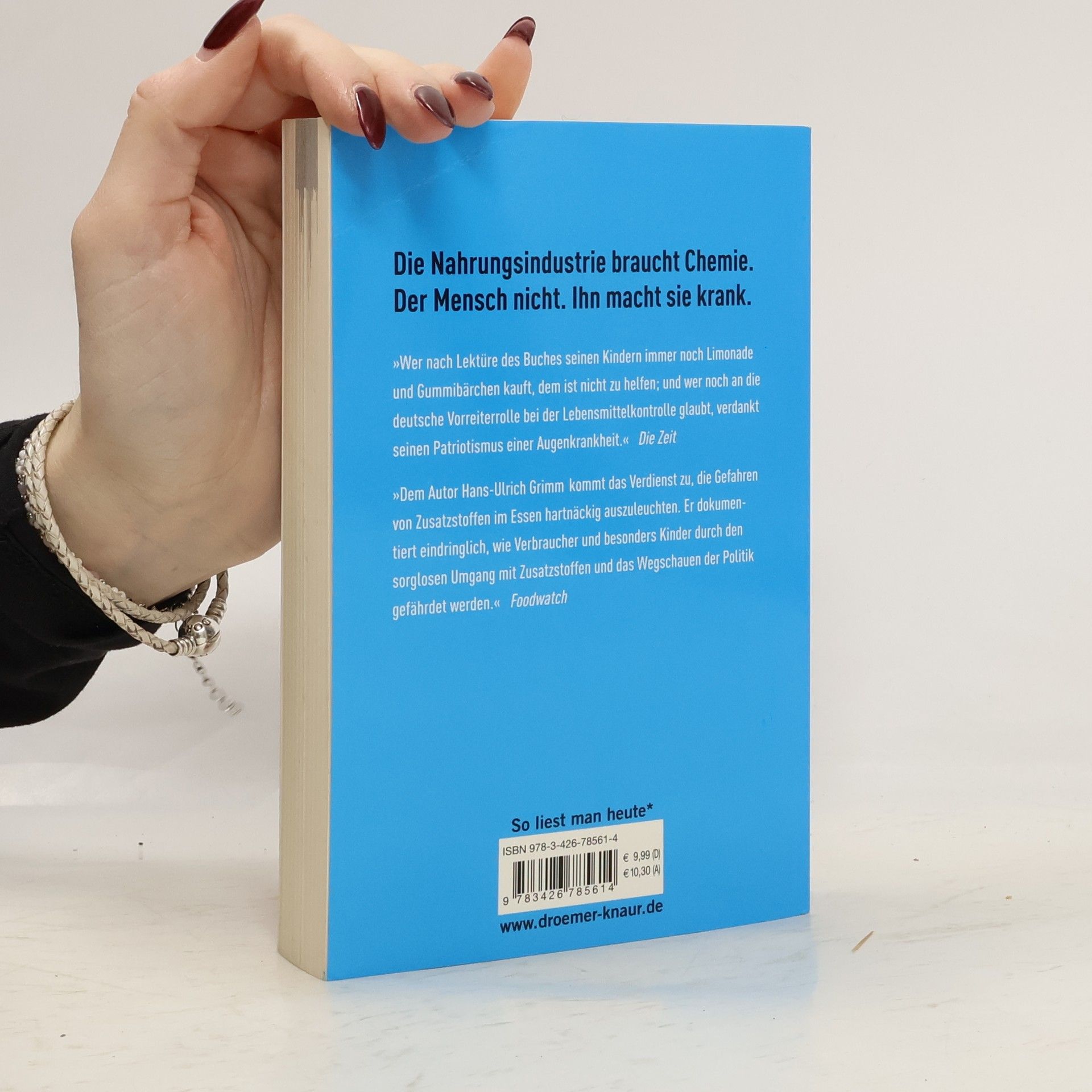 »Wer nach Lektüre des Buches seinen Kindern immer noch Limonade und Gummibärchen kauft, dem ist nicht zu helfen; und wer noch an die deutsche Vorreiterrolle bei der Lebensmittelkontrolle glaubt, verdankt seinen Patriotismus einer Augenkrankheit.« Die Zeit »Dem Autor Hans-Ulrich Grimm kommt das Verdienst zu, die Gefahren von Zusatzstoffen im Essen hartnäckig auszuleuchten. Er dokumentiert eindringlich, wie Verbraucher und besonders Kinder durch den sorglosen Umgang mit Zusatzstoffen und das Wegschauen der Politik gefährdet werden.« FoodwatchWie kommt der Geschmack ins Fertiggericht, und was macht Bonbons bunt? Jeder hat schon von Zusatzstoffen wie Glutamat und Aspartam gehört. Aber was hat es damit wirklich auf sich, und was verbirgt sich hinter E 965, E 650 und den anderen kleingedruckten Inhaltsstoffen? Klar ist: Essen macht nicht nur satt, sondern immer häufiger auch krank. Die chemische Wunderwelt ist nicht nur gefährlich für Herz und Hirn, sie kann sogar tödlich sein. Das Standardwerk zur Chemie im Essen umfasst ein Lexikon zu Lebensmittelzusatzstoffen, zu Gefahren und Risikogruppen. Eine äußerst hilfreiche Pflichtlektüre für jeden, der gerne weiß, was er isst. „Chemie im Essen“ ist die aktualisierte und erweiterte Neuausgabe des Buches „Echt künstlich“.