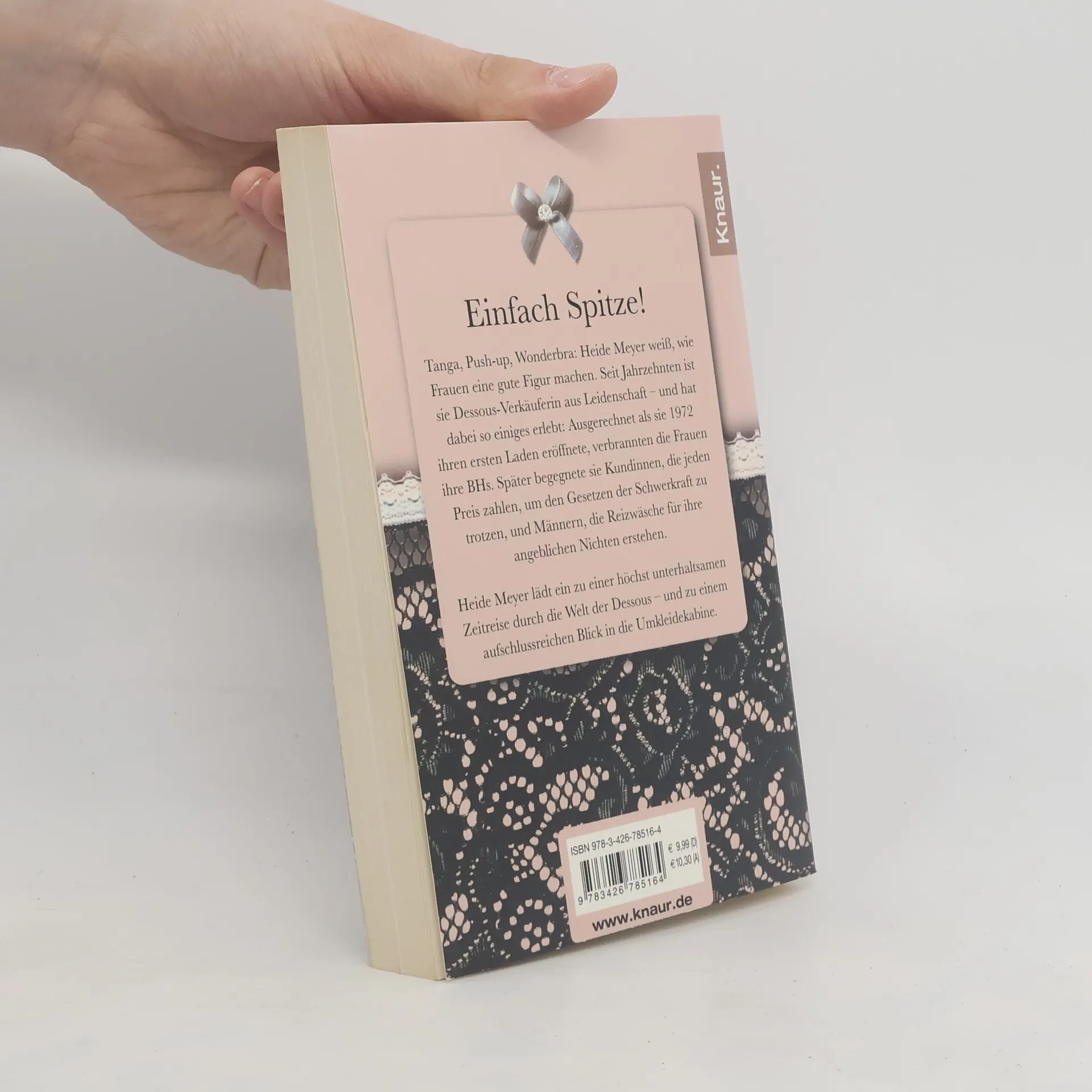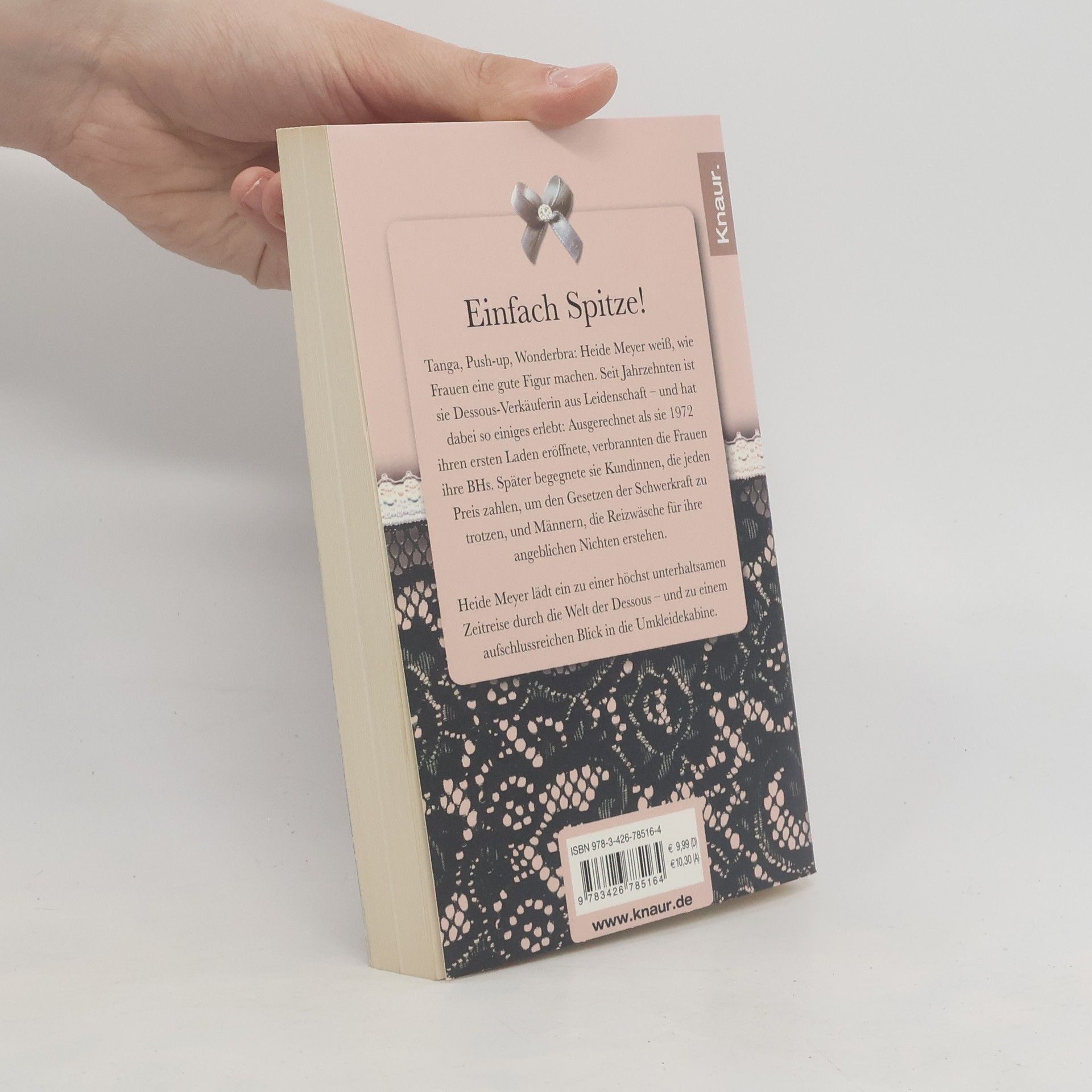 Tanga, Push-up, Strapse: Heide Meyer weiß ganz genau, wie ihre Kundinnen eine gute Figur machen. Seit über fünfzig Jahren arbeitet sie als Dessous- Verkäuferin, und dabei hat sie einiges erlebt: Frauen, die jeden Preis zahlen, um den Gesetzen der Schwerkraft zu trotzen, und Männer, die Reizwäsche für ihre Nichten erstehen. Kaum jemand kommt seinen Kunden so nah wie eine Dessous- Verkäuferin. Authentisch, unterhaltsam und mit großer Leidenschaft für ihren Beruf erzählt Heide Meyer von ihren täglichen Erlebnissen und lädt ein zu einem höchst aufschlussreichen Blick in die Umkleidekabine.