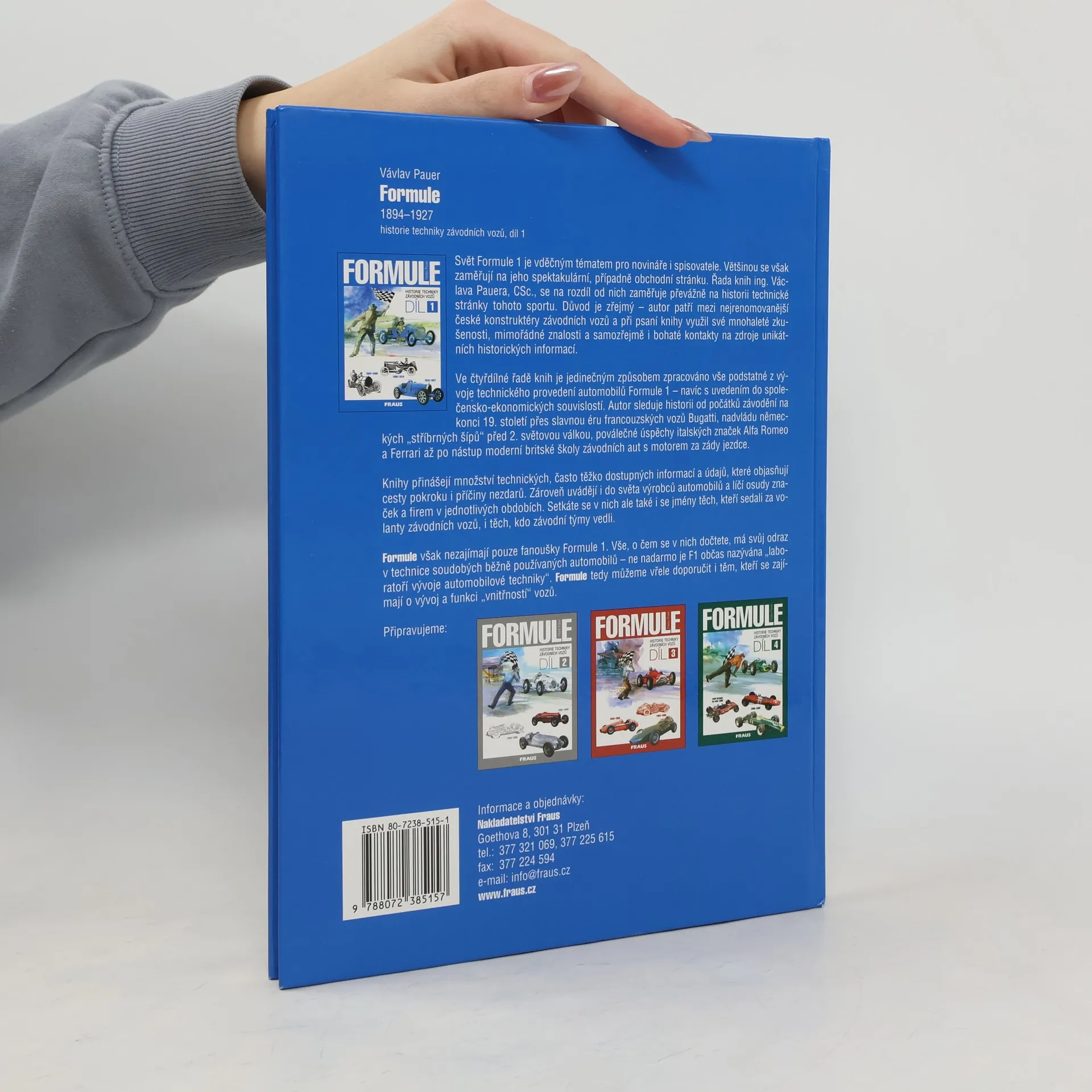 První díl celkem čtyřdílné řady zpracovává vše podstatné z vývoje technického provedení automobilů Grand Prix, předchůdců Formule 1, i s uvedením do společensko-ekonomických souvislostí. Přináší množství technických, většinou těžko dostupných informací a údajů, které objasňují cesty pokroku i příčiny nezdarů. Kniha je rozdělena na tři charakteristická historická období. V každém uvádí dobové sportovní podniky, výrobce automobilů, technické předpisy a zejména techniku vozů s popisem nejvýznamnějších modelů. Zajímavá publikace dále zahrnuje množství nákresů technických detailů, fotografií závodních vozů a převodní technické tabulky soustavy SI a anglických měr. Publikace věnovaná dějinám techniky závodních aut startujících v závodech o Velké ceny - Grand Prix. První díl mapuje období od roku 1894 do roku 1927