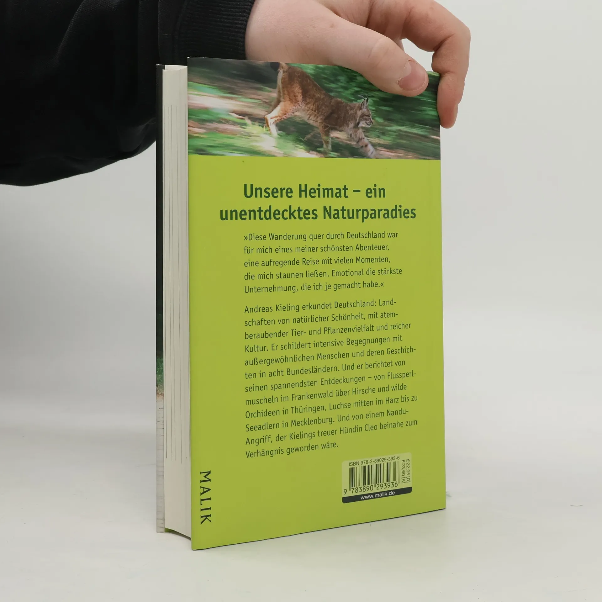 Andreas Kieling bereiste die ganze Welt - die überraschendste Entdeckungstour aber wurde für ihn seine Deutschlandwanderung mit seiner treuen Hündin Cleo entlang der ehemaligen innerdeutschen Grenze. Vom Dreiländereck bis an die Ostsee, 1400 Kilometer, acht Bundesländer in sieben Wochen. Er fand die Wildnis mitten in Deutschland und entdeckte seine Heimat ganz neu: Flussperlmuscheln in der bayrischen Regnitz, Mufflons im Thüringer Wald, Luchse im Harz, Urwald und wilde Orchideen, Nandus und Seeadler ..