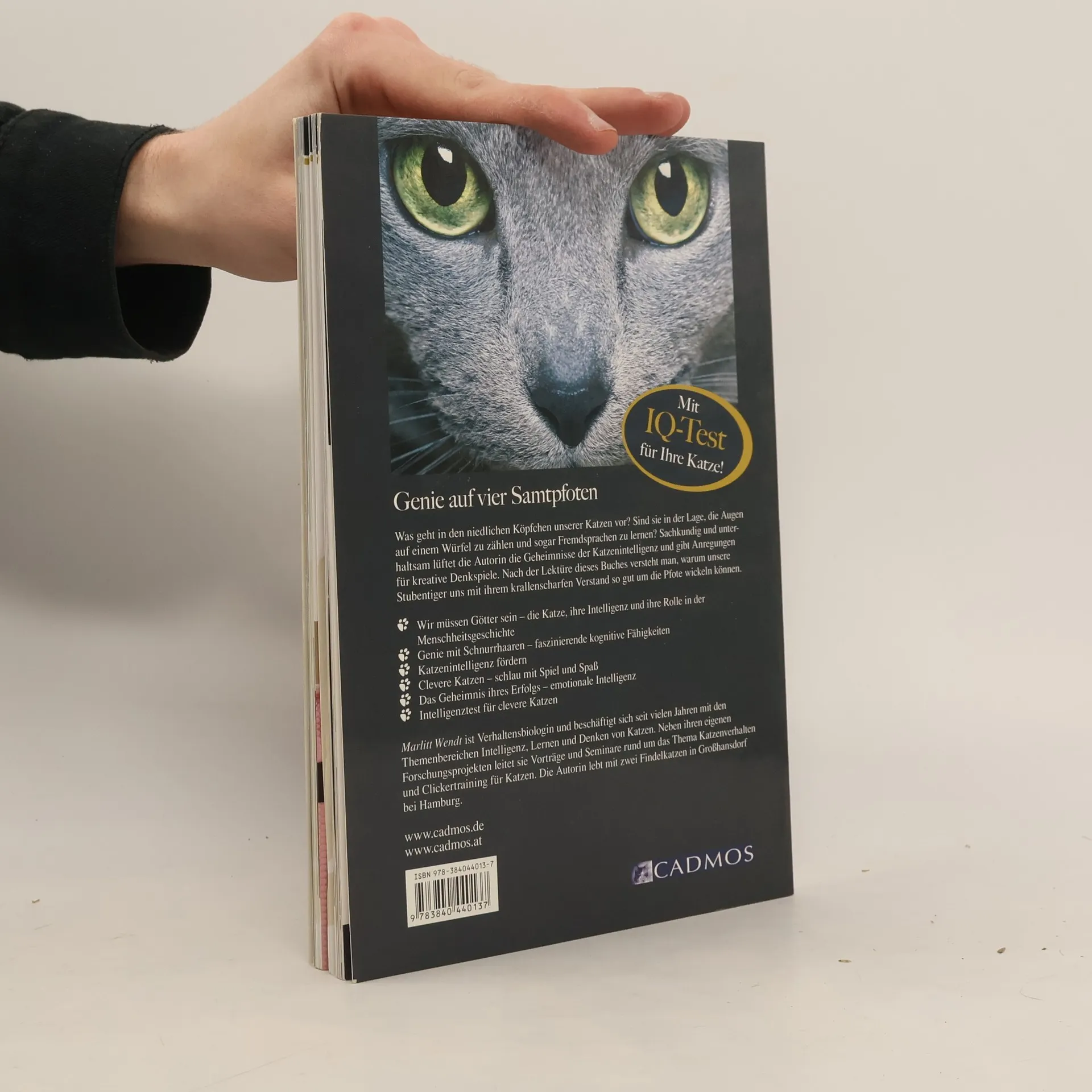 Intelligenzbestien in flauschigem Pelz und mit niedlichen Kulleraugen: Katzen offenbaren erstaunliche geistige Fähigkeiten. Sie schaffen es, ihre menschlichen Nichtkatzen ganz nach Wunsch zu manipulieren, sie bewegen sich geschmeidig in der abstrakten Welt der Zahlen und sprechen sogar mehrere „Fremdsprachen“ fließend – je nachdem, ob sie gerade mit den zweibeinigen Mitbewohnern oder mit dem Familienhund kommunizieren. Unsere Stubentiger kontrollieren mit ihrem krallenscharfenVerstand unseren häuslichen Alltag: Die Katze bestimmt, wann wir am Wochenende aufstehen sollen und welche Leckerei wir ihr zum Frühstück servieren dürfen. Wie hypnotisiert lesen wir ihr alle Wünsche von den Augen ab, lassen ihr im richtigen Moment eine ausgiebige Fellpflege zuteil werden oder unterhalten sie am Abend mit dem passenden Spiel. In diesem Buch erläutert Verhaltensbiologin Marlitt Wendt die intellektuellen Leistungen unserer Hauskatzen unterhaltsam und kenntnisreich. Ein Intelligenztest für Katzen und kreative Denkspiele runden diesen Katzenratgeber ab.