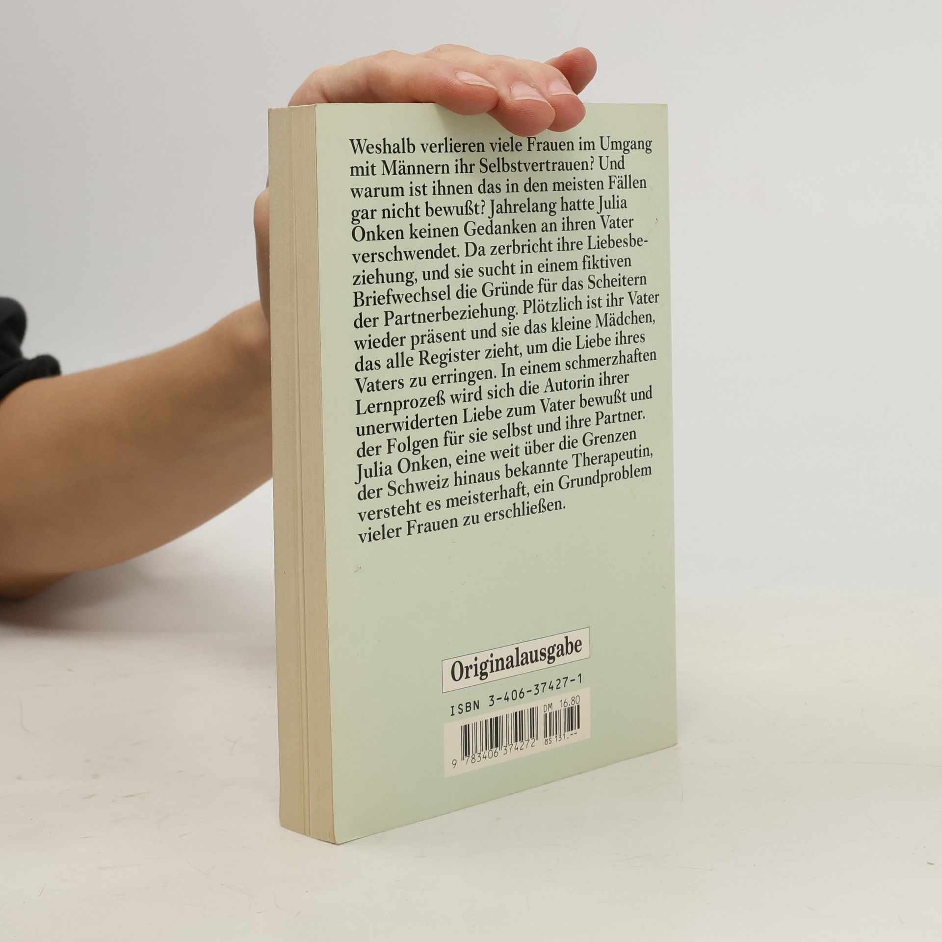 Weshalb verlieren viele Frauen im Umgang mit Männern ihr Selbstvertrauen? Und warum ist ihnen das in den meisten Fällen gar nicht bewußt? Jahrelang hatte Julia Onken keinen Gedanken an ihren Vater verschwendet. Da zerbricht ihre Liebesbeziehung, und sie sucht in einem fiktiven Briefwechsel die Gründe für das Scheitern der Partnerbeziehung. Plötzlich ist ihr Vater wieder präsent und sie das kleine Mädchen, das alle Register zieht, um die Liebe ihres Vaters zu erringen. In einem schmerzhaften Lernprozeß wird sich die Autorin ihrer unerwiderten Liebe zum Vater bewußt und der Folgen für sie selbst und ihre Partner. Julia Onken, eine weit über die Grenzen der Schweiz hinaus bekannte Therapeutin, versteht es meisterhaft, ein Grundproblem vieler Frauen zu erschließen.