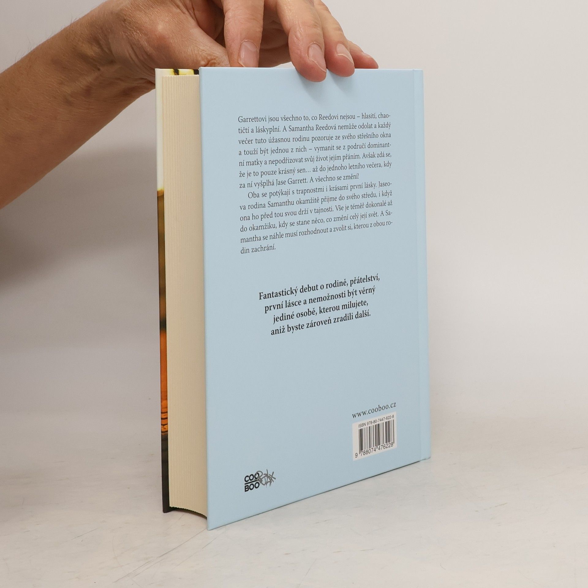 Garrettovi jsou všechno to, co Reedovi nejsou – hlasití, chaotičtí a láskyplní. A Samantha Reedová nemůže odolat a každý večer tuto úžasnou rodinu pozoruje ze svého střešního okna a touží být jednou z nich – vymanit se z područí dominantní matky a nepodřizovat svůj život jejím přáním. Avšak zdá se, že je to pouze krásný sen… až do jednoho letního večera, kdy za ní vyšplhá Jase Garrett. A všechno se změní! Oba se potýkají s trapnostmi i krásami první lásky, Jaseova rodina Samanthu okamžitě přijme do svého středu, i když ona ho před tou svou drží v tajnosti. Vše je téměř dokonale až do okamžiku, kdy se stane něco, co změní celý její svět. A Samantha se náhle musí rozhodnout a zvolit si, kterou z obou rodin zachrání. Fantastický debut o rodině, přátelství, první lásce a nemožnosti být věrný jediné osobě, kterou milujete, aniž byste zároveň zradili další.