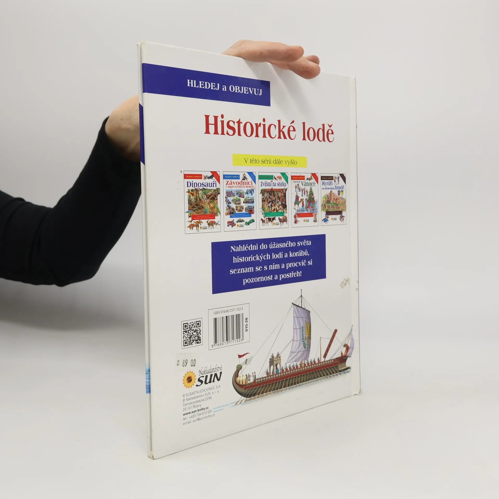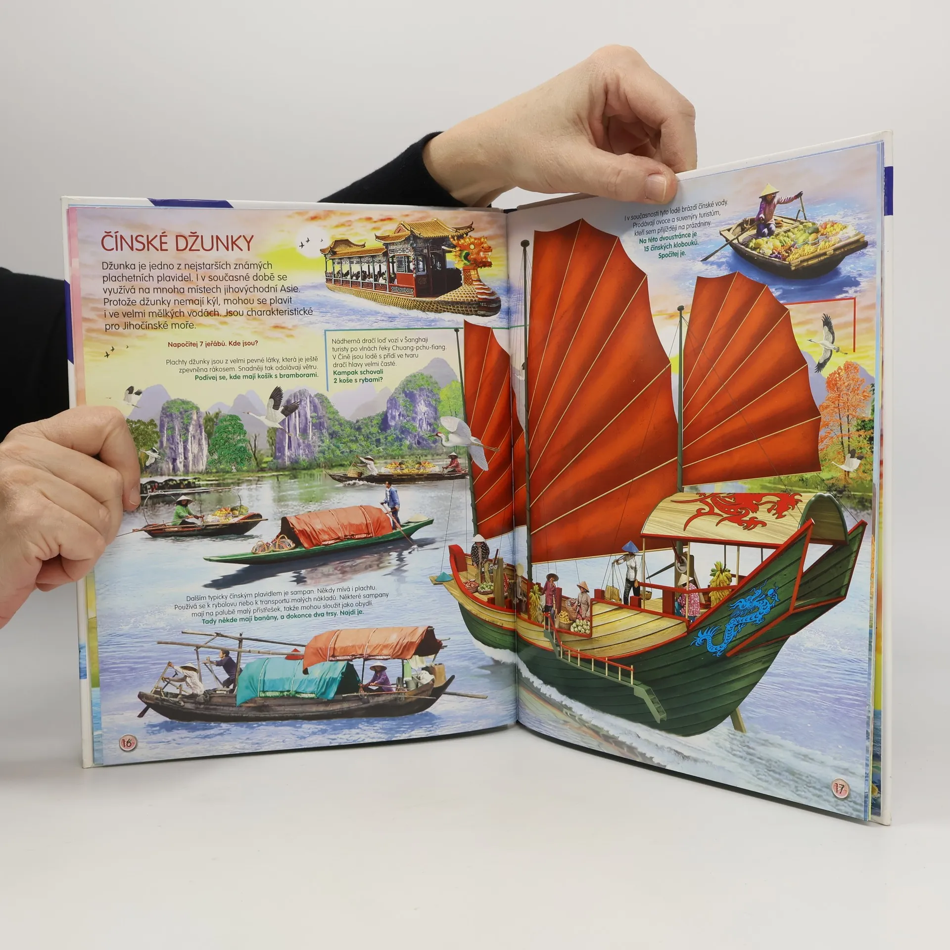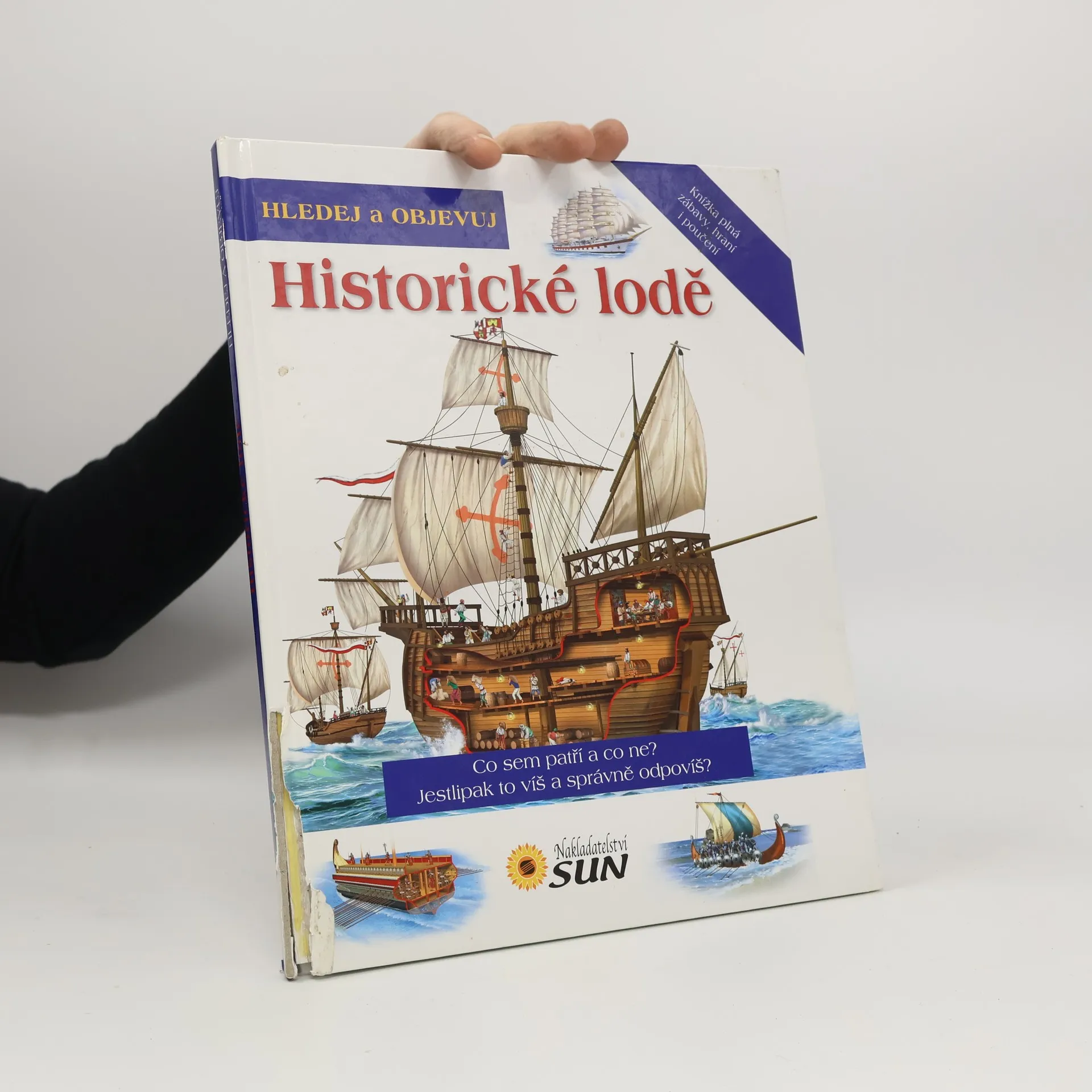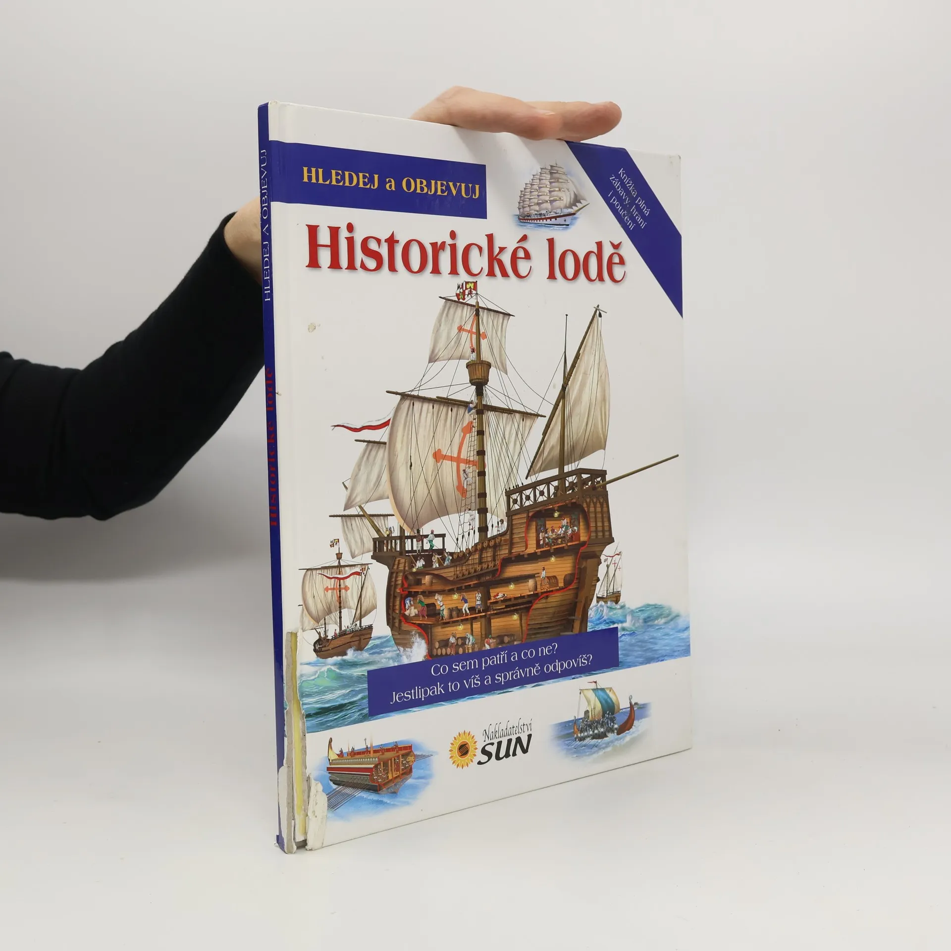 Děti se dozvědí spoustu zajímavých informací o různých tématech. Na obrázcích pak vyhledají předměty, které tam nepatří, ale také ty, jež se tématu týkají. Kniha představuje lodě od antiky přes středověké koráby až po velké obchodní plachetnice 19. století. Zvláštní kapitola se týká pirátů a námořních bitev. Každé kapitole je věnována dvoustrana s krátkými texty a barevnými ilustracemi, kde jsou navíc poschovávané různé předměty, které je potřeba najít. Obrazová publikace představující lodě v průběhu věků od nejjednodušších plavidel až po největší plachetnice.