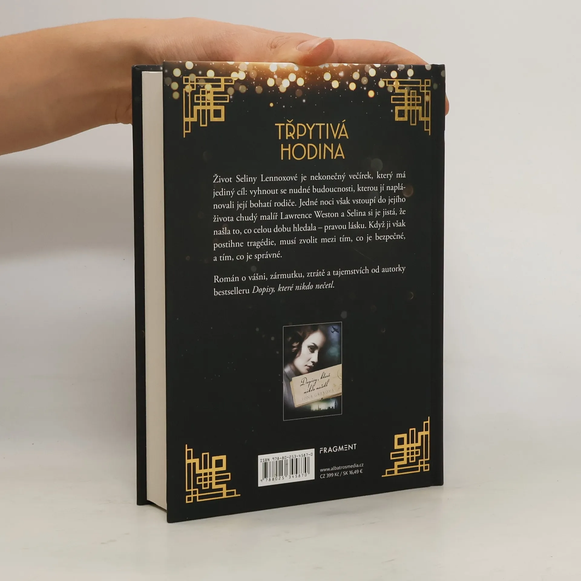 Selina Lennoxová patří ke zlaté mládeži. Její život je nekonečný večírek plný alkoholu a skandálů, který má jediný cíl: vyhnout se nudnému životu, který jí naplánovali rodiče. Lawrence Weston je chudý malíř, který jedné noci nečekaně vstoupí do Selinina života, a ačkoliv si uvědomuje, že dívka jejího postavení nikdy nemůže být jeho, nedokáže ji opustit. Láska, kterou prožívají, je opravdová. Selina sní o šťastném životě po jeho boku, pak ale dojde k tragédii, která ji donutí učinit rozhodnutí, které je bezpečné, místo toho, které je správné… Román o vášni, zármutku, ztrátě a tajemstvích, zasazený do období bouřlivých změn mezi dvěma světovými válkami.