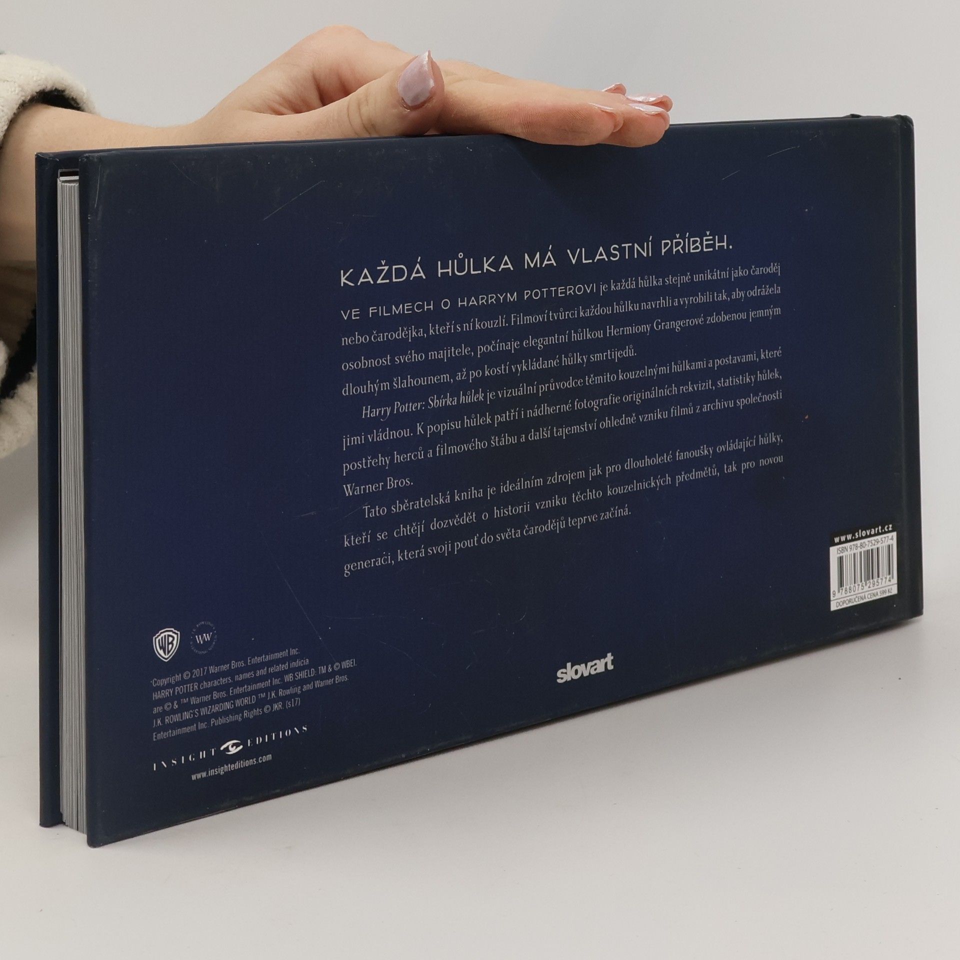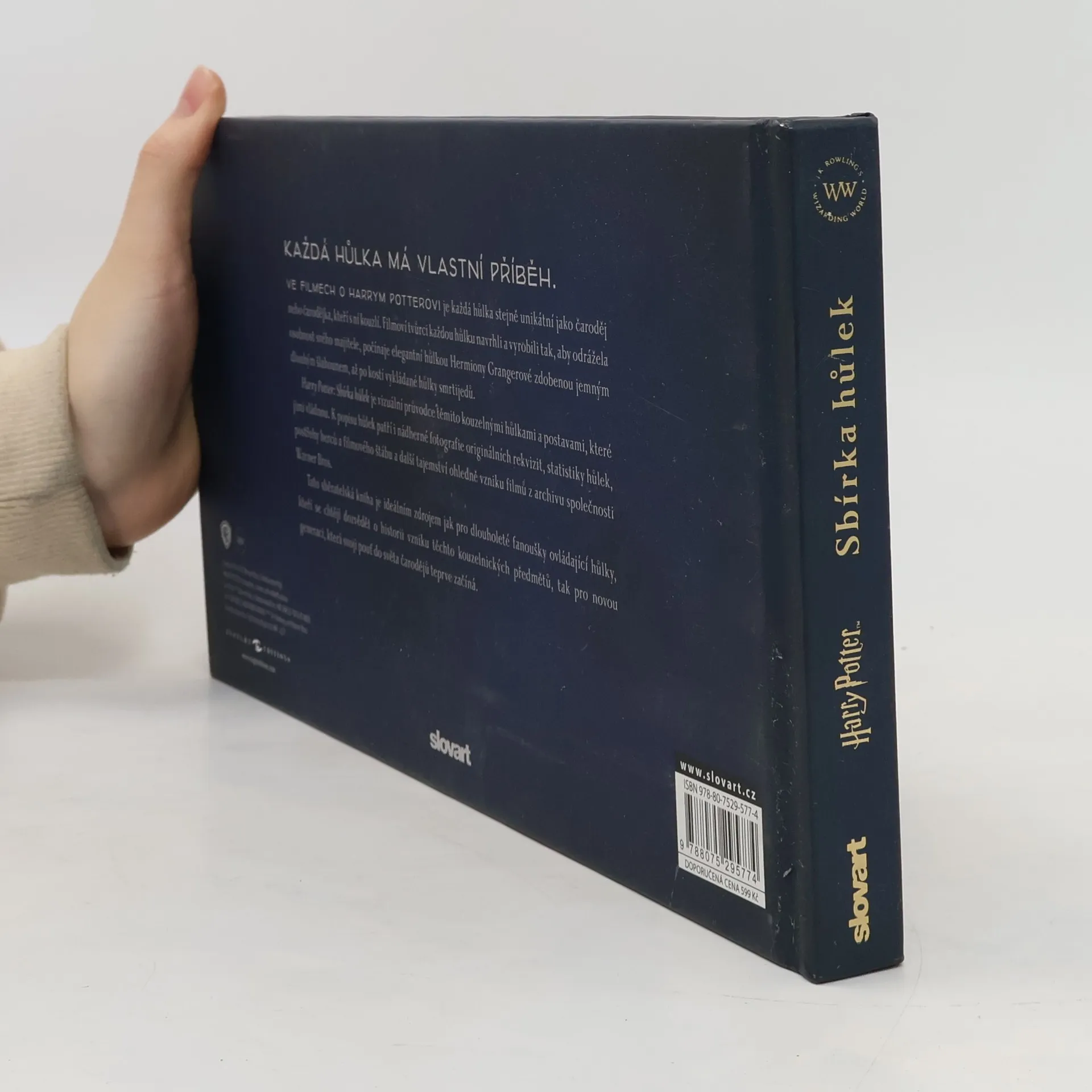 Ve filmech o Harrym Potterovi je každá hůlka stejně unikátní jako čaroděj nebo čarodějka, kteří s ní kouzlí. Filmoví tvůrci každou hůlku navrhli a vyrobili tak, aby odrážela osobnost svého majitele, počínaje elegantní hůlkou Hermiony Grangerové zdobenou jemným dlouhým šlahounem, až po kostí vykládané hůlky smrtijedů. Harry Potter: Sbírka hůlek je vizuální průvodce těmito kouzelnými hůlkami a postavami, které jimi vládnou. K popisu hůlek patří i nádherné fotografie originálních rekvizit, statistiky hůlek, postřehy herců a filmového štábu a další tajemství ohledně vzniku filmů z archivu společnosti Warner Bros. Tato sběratelská kniha je ideálním zdrojem jak pro dlouholeté fanoušky ovládající hůlky, kteří se chtějí dozvědět o historii vzniku těchto kouzelnických předmětů, tak pro novou generaci, která svoji pouť do světa čarodějů teprve začíná.