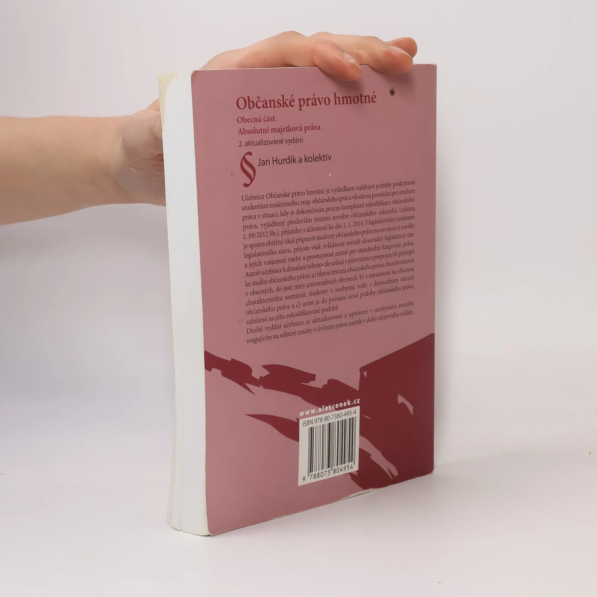 Učebnice Občanské právo hmotné je výsledkem naléhavé potřeby poskytnout studentům soukromého, resp. občanského práva vhodnou pomůcku pro studium práva v situaci, kdy je dokončován proces komplexní rekodifikace občanského práva, vyjádřený především textem nového občanského zákoníku (zákona č. 89/2012 Sb.), přijatého s účinností ke dni 1. 1. 2014. S legislativními změnami je spojen obtížný úkol připravit studenty občanského práva na osvojení si nového legislativního stavu, přitom však zvládnout rovněž dosavadní legislativní stav a jejich vzájemné vazby a prostupnost nutné pro standardní fungování práva. Autoři učebnice k dosažení tohoto cíle usilují v jejím textu o propojení tří přístupů ke studiu občanského práva: a) hlavní témata občanského práva charakterizovat v obecných, do jisté míry univerzálních obrysech, b) v návaznosti na obecnou charakteristiku seznámit studenty v nezbytné míře s dosavadním stavem občanského práva a c) uvést je do poznání nové podoby občanského práva, založené na jeho rekodifikované podobě. Druhé vydání učebnice je aktualizované a upravené v nezbytném rozsahu reagujícím na některé změny v civilním právu nastalé v době od prvního vydání.