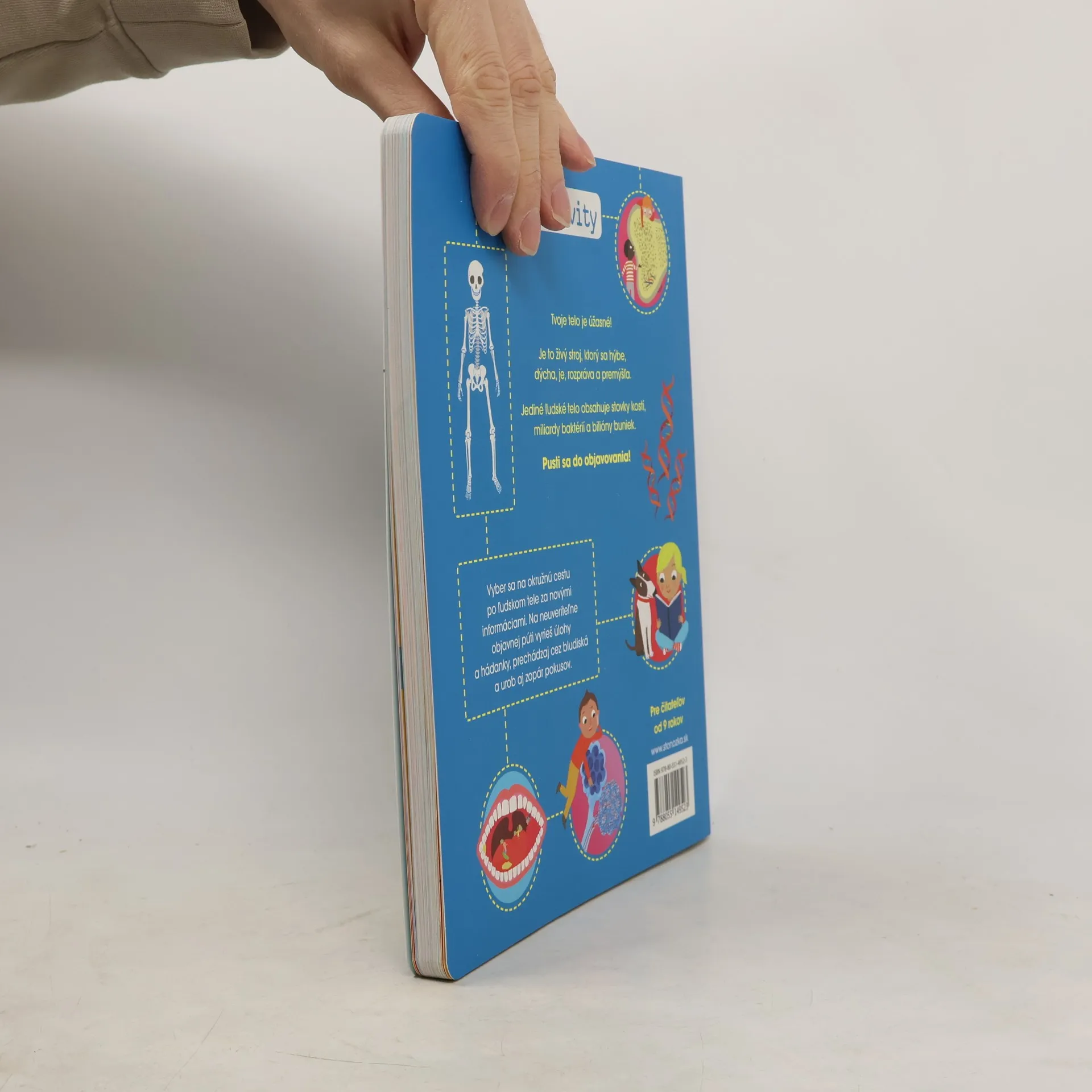 Tvoje telo je úžasné. Je to živý stroj, ktorý sa dokáže hýbať, dýchať, jesť, rozprávať a premýšľať. Jediné ľudské telo obsahuje stovky kostí, miliardy baktérií a bilióny buniek. Pusti sa do objavovania! Vyber sa na okružnú cestu po ľudskom tele za novými informáciami. Na neuveriteľnej objavnej púti vyrieš úlohy a hádanky, prechádzaj cez bludiská a urob aj zopár pokusov. Pre čitateľov od 9 rokov.