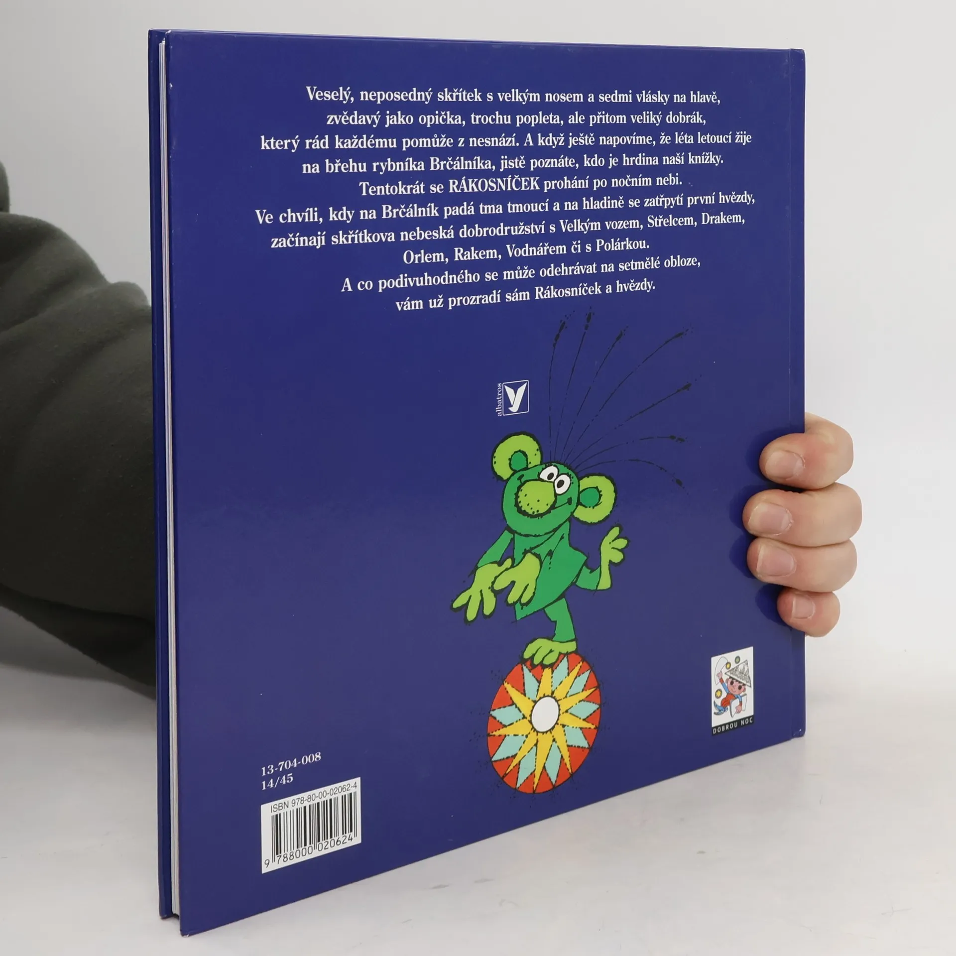 Tentokrát se Rákosníček prohání po nočním nebi. Ve chvíli, kdy na Brčálník padá tma tmoucí a na hladině se zatřpytí první hvězdy, začínají skřítkova nebeská dobrodružství s Velkým vozem, Střelcem, Drakem, Orlem, Rakem, Vodnářem či s Polárkou. A co podivuhodného se může odehrávat na setmělé obloze, vám už prozradí sám Rákosníček a hvězdy.