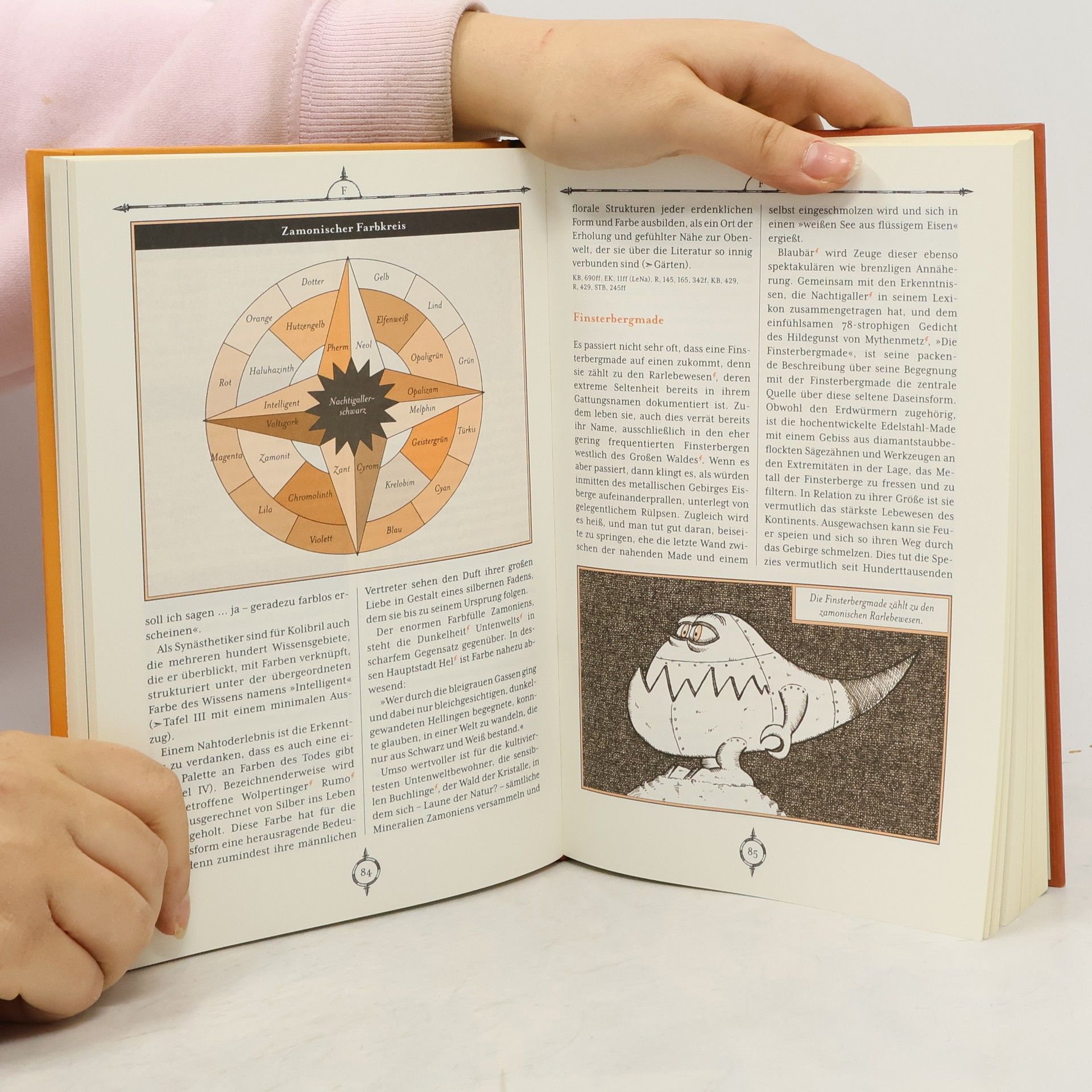 Zamonien für Anfänger und Fortgeschrittene und solche, die es werden wollen! Alles, was die Welt über Walter Moers’ phantastischen Kontinent Zamonien wissen sollte: Dieses reich illustrierte und liebevoll gestaltete Lexikon präsentiert die Fülle dieser Welt in über 150 verschwenderisch illustrierten Artikeln: über Buchhaim und Brummli, Hel und Haifischmaden, Kakertratten und Kometenwein, Orm und Olz, Schrecksen und Stollentrolle, Untenwelt, Unvorhandene Winzlinge und vieles andere mehr … Millionen Leser weltweit folgen Buch für Buch den Helden von Walter Moers und Hildegunst von Mythenmetz auf den phantastischen Kontinent Zamonien, wo es von skurrilen Daseinsformen, unglaublichen Naturerscheinungen, fabelhaften Errungenschaften von Kunst und Wissenschaft, aber auch Abenteuern aller Art nur so wimmelt. Und so ist es kein Wunder, dass Zamonien jede Menge Fragen aufwirft: Lebende Bücher – Wirklichkeit oder Fiktion? Was ist eigentlich das Orm? Wie durchquert man einen Bolloggkopf? Wo bekommt man in Zamonien die besten Rauschmittel? Ernähren sich Buchlinge wirklich von Büchern? Reicht Zamonisch oder braucht man auch Frostfrattisch? Wie tickt General Ticktack? Anja Dollinger ist es gelungen, Licht in die dunklen Geheimnisse dieser rätselhaften Welt des Walter Moers zu bringen. Ausstattung: mit zahlreichen Illustrationen
