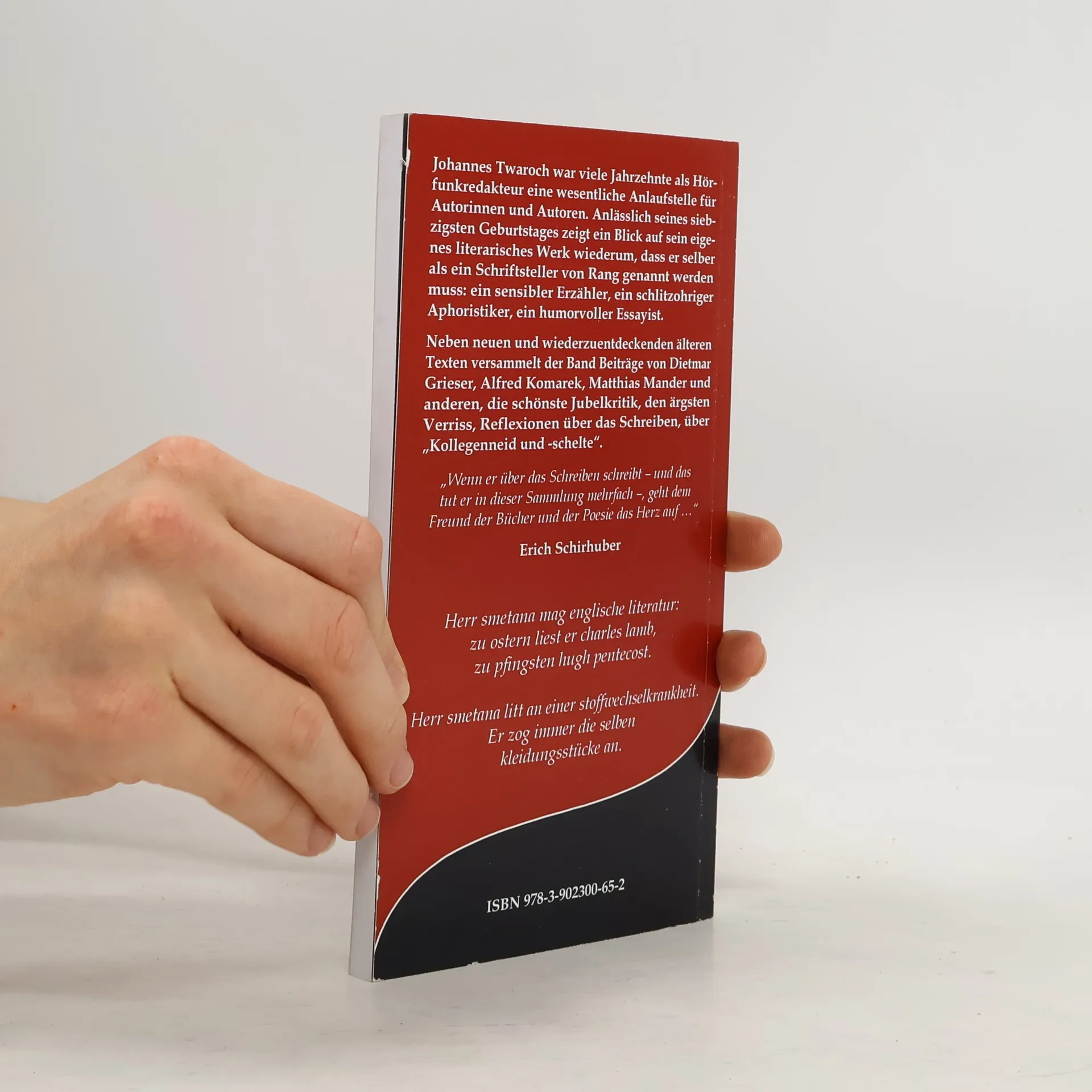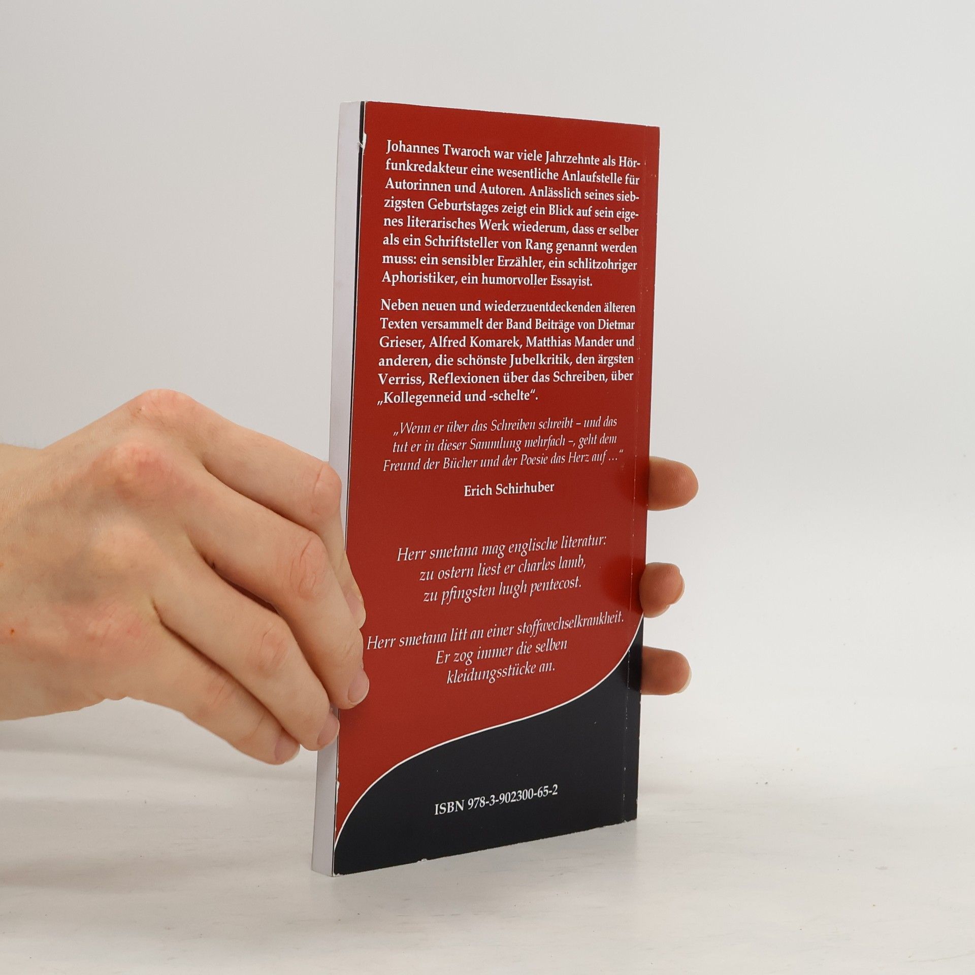 Johannes Twaroch war viele Jahrzehnte als Hörfunkredakteur eine wesentliche Anlaufstelle für AutorInnen. Anlässlich seines 70. Geburtstages zeigt ein Blick auf sein eigenes literarisches Werk wiederum, dass er selber als ein Schriftsteller von Rang genannt werden muss: ein sensibler Erzähler, ein schlitzohriger Aphoristiker, ein humorvoller Essayist. Neben neuen und wiederzuentdeckenden älteren Texten versammelt der Band Beiträge von Dietmar Grieser, Alfred Komarek, Matthias Mander und anderen, die schönste Jubelkritik, den ärgsten Verriss, Reflexionen über das Schreiben, über „Kollegenneid und -schelte“.