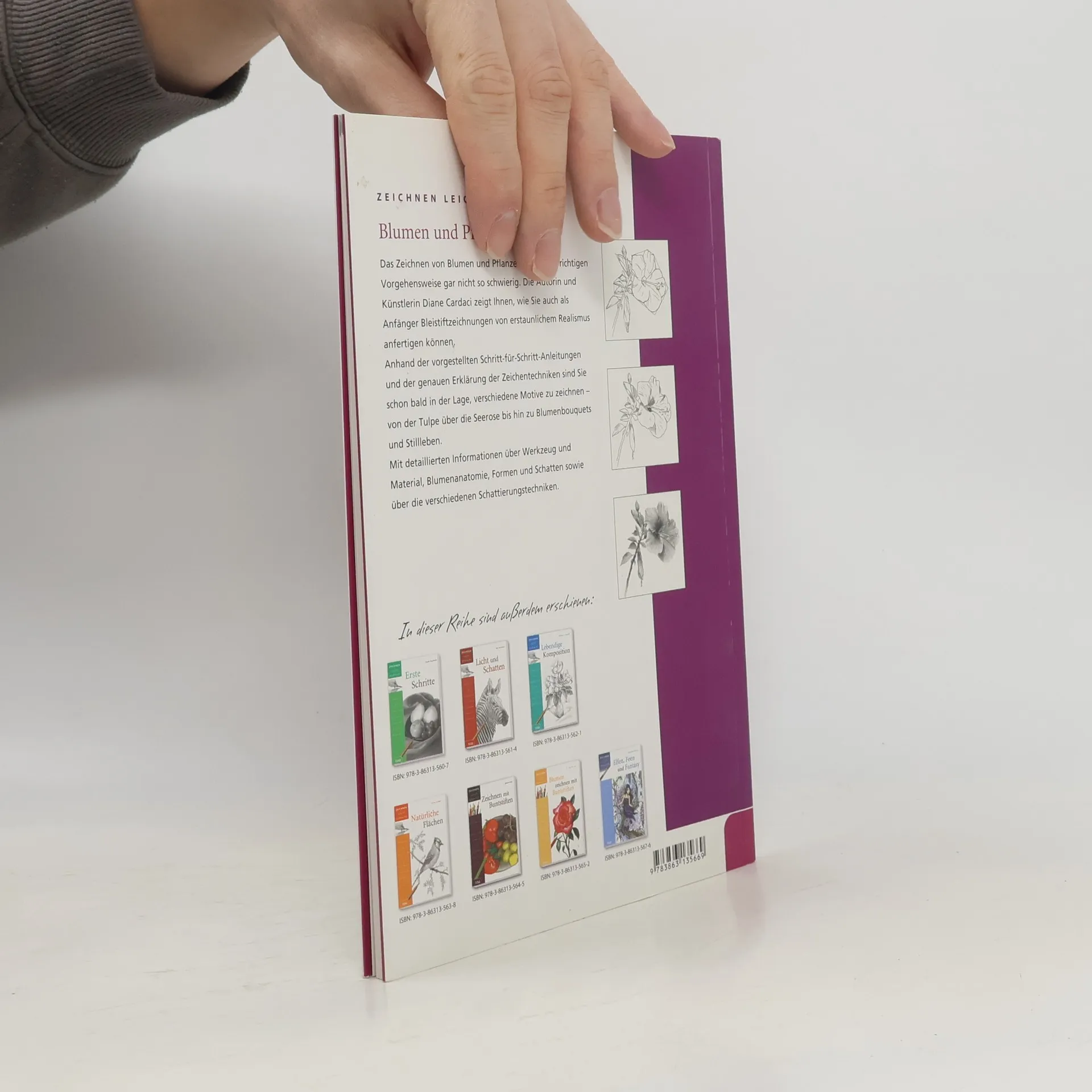 Das Zeichnen von Blumen und Pflanzen ist mit der richtigen Vorgehensweise gar nicht so schwierig. Die Autorin und Künstlerin Diane Cardaci zeigt Ihnen, wie Sie auch als Anfänger Bleistiftzeichnungen von erstaunlichem Realismus anfertigen können. Anhand der vorgestellten Schritt-für-Schritt-Anleitungen und der genauen Erklärung der Zeichentechniken sind Sie schon bald in der Lage, verschiedene Motive zu zeichnen - von der Tulpe über die Seerose bis hin zu Blumenbouquets und Stillleben. Mit detaillierten Informationen über Werkzeug und Material, Blumenanatomie, Formen und Schatten sowie über die verschiedenen Schattierungstechniken.