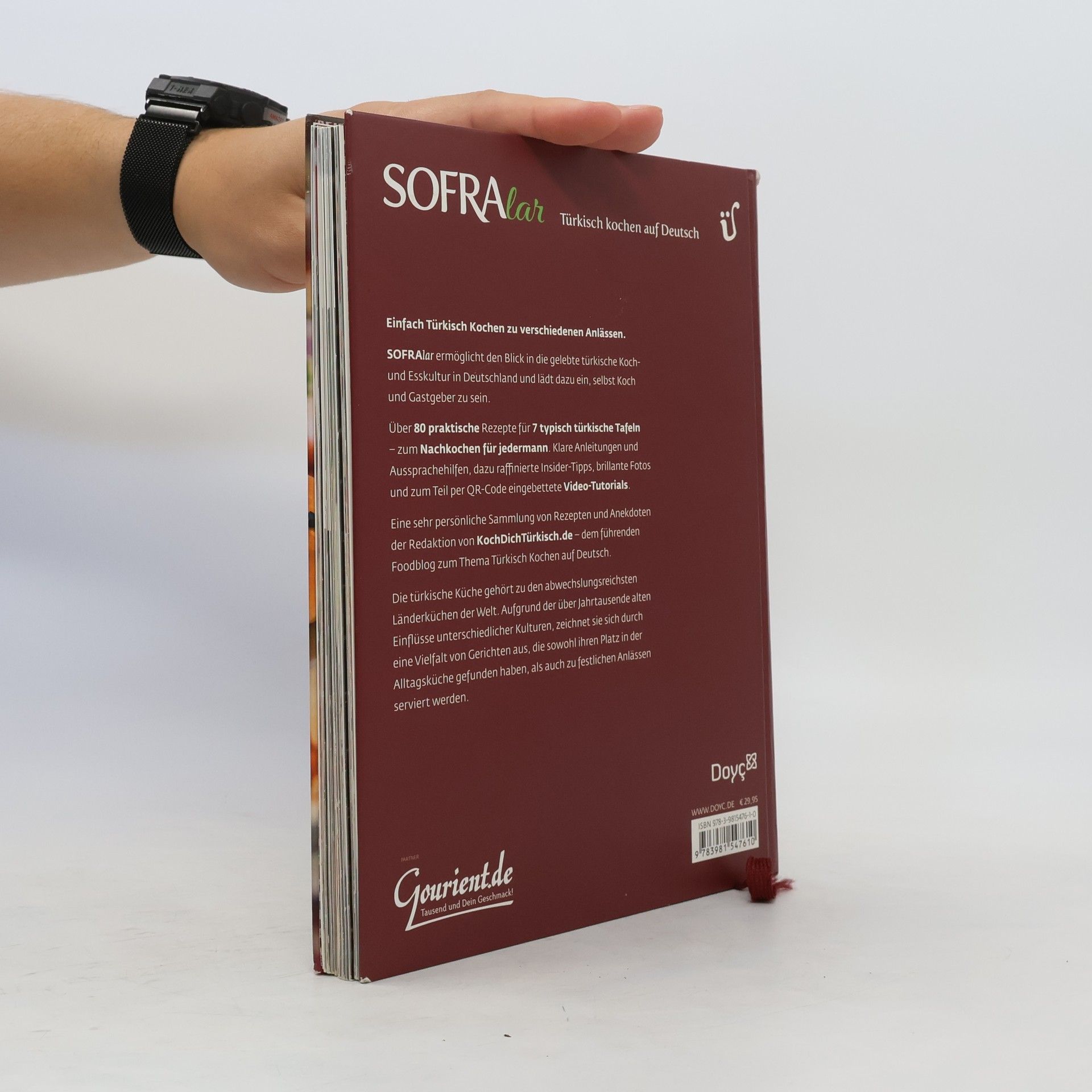Über 80 praktische Rezepte für 7 typisch türkische Tafeln – zum Nachkochen für jedermann. Klare Anleitungen und Aussprachehilfen, dazu raffinierte Insider-Tipps, brillante Fotos und zum Teil per QR-Code eingebettete Video-Tutorials. SOFRAlar (Türkisch: Tafel) ermöglicht den Blick in die gelebte türkische Koch- und Esskultur in Deutschland und lädt dazu ein, selbst Koch und Gastgeber zu sein. Bereits seit fünf Jahren erfreut KochDichTürkisch.de alle interessierten Hobbyköche jeglicher Couleur mit Rezepten und Geschichten aus der türkischen Wohnküche. Dies ist eine sehr persönliche Sammlung von Rezepten und Anekdoten der Redaktion von KochDichTürkisch.de – dem führenden Foodblog zum Thema Türkisch Kochen auf Deutsch.
