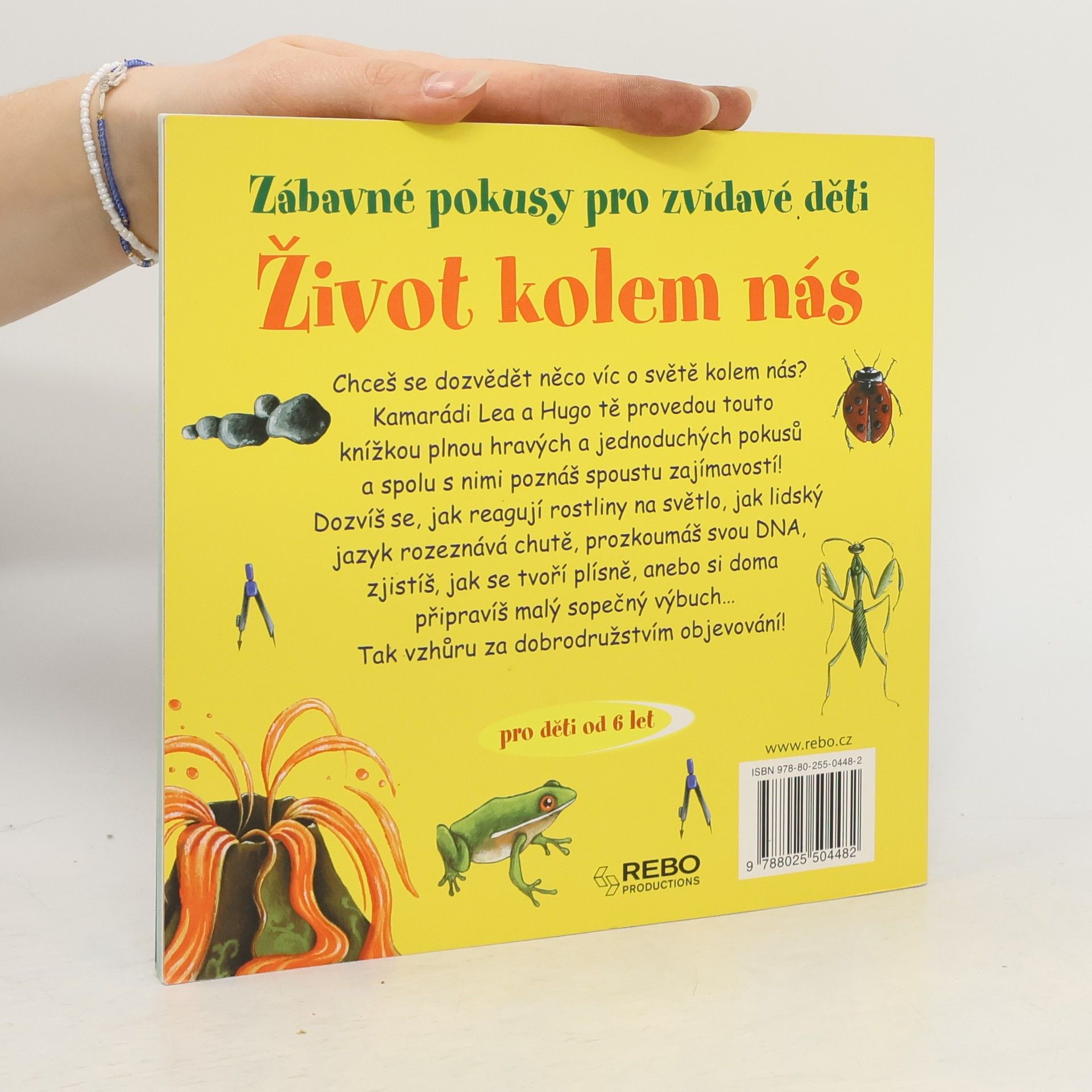Knížka Život kolem nás obsahuje několik zajímavých pokusů, při kterých se děti pobaví a zároveň poučí. Poznají, jak funguje lidské tělo a jiné živé organismy naší planety. Prostřednictvím jednoduchých pokusů, které jsou v knížce názorně popsány krok za krokem, se malí badatelé dozvědí, jak reagují rostliny na světlo, jak lidský jazyk rozeznává chutě, budou moci prozkoumat svou DNA, zjistí, jak se tvoří plísně, anebo si mohou připravit malý sopečný výbuch.