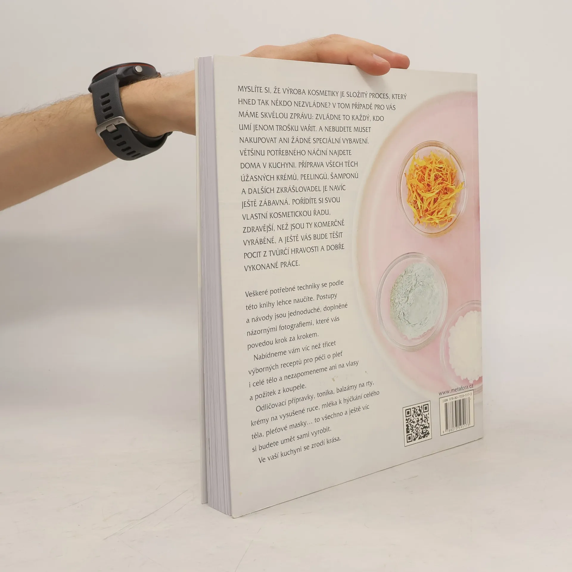Myslíte si, že výroba kosmetiky je složitý proces, který hned tak někdo nezvládne? Máme pro vás tedy skvělou zprávu: Zvládne to každý, kdo umí jenom trošku vařit. Nemusíte nakupovat žádné speciální vybavení, většinu potřebného najdete doma v kuchyni. S pomocí této knihy si sami vyrobíte vlastní kosmetickou řadu, od peelingů, po krémy, šampony a další kosmetické přípravky, z čistě přírodních materiálů. Navíc zjistíte, že výroba vlastní kosmetiky je především zábavná. V knize naleznete více než třicet výborných receptů na výrobky pro péči o pleť i celé tělo, nezapomeneme ani na vlasy či požitek z koupele. Postupy a návody jsou jednoduché, doplněné názornými fotografiemi, které vás povedou krok za krokem a poradí i s možnými výrobními obtížemi. Odličovací přípravky, tonika, balzámy na rty, krémy na vysušené ruce, mléka k hýčkání celého těla, pleťové masky… to všechno a ještě víc si budete umět vyrobit. Přímo ve vaší kuchyni se zrodí krása.